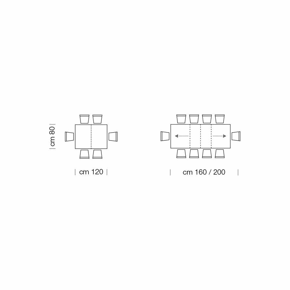 L 120 (280) x P 80 x H 76 cm 14 seats extendable with four extensions of 40cm inside;