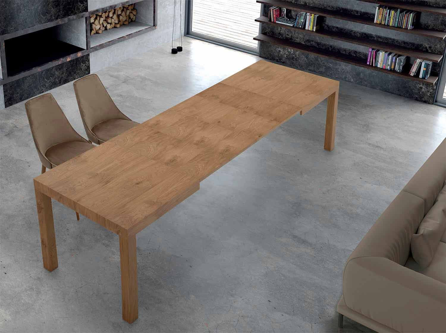 Dining table extensible up to 470 cm made in Italy handcrafted in knotted oak veneered wood.