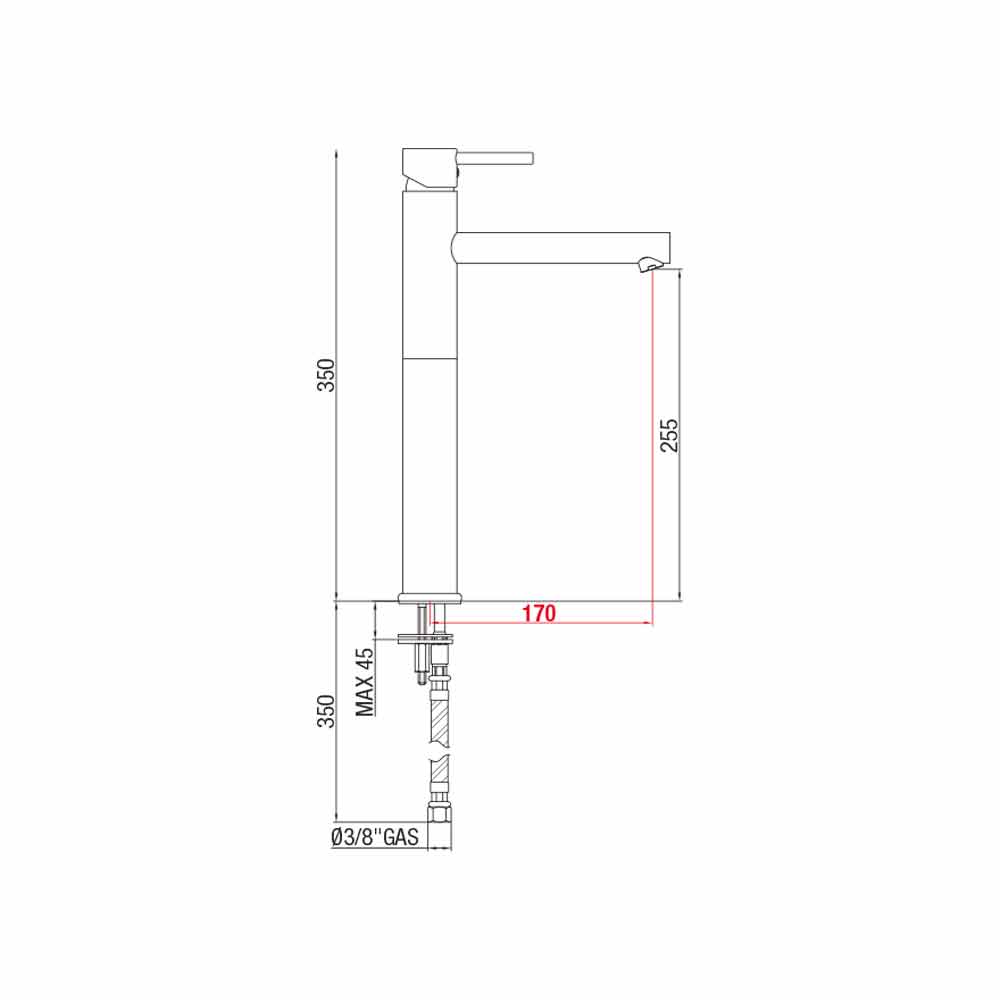 Extended mixer without waste for bathroom sink in brass Made in Italy.