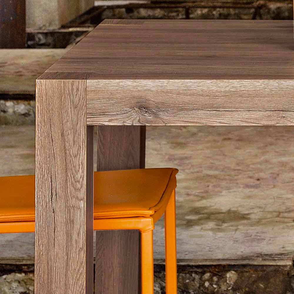 The Oky dining table is made of melamine, with oak nature finish. It has 4 practical extensions of 40 cm each that allow you to extend the table up to a surface of 300 cm, through a practical and fast extension system on sliding rails.