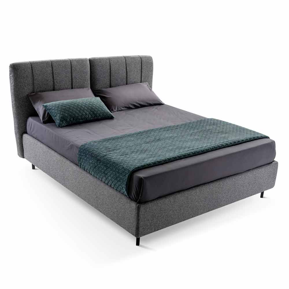 Luxury modern double bed with fabric storage box and metal feet, handcrafted in Italy.