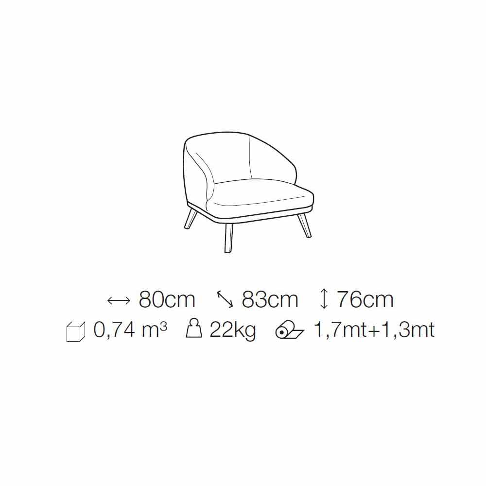 Imposing and refined living room armchair made in Italy with base in solid wood with eucalyptus finish and shell covered in two-tone fabric completely removable. The internal structure is produced with wood panels covered in Tecnoform while the backrest and seat cushion are padded with non-deformable polyurethane foam also covered in Tecnoform. Simple shapes and elegant lines give life to an armchair designed for the great moments dedicated to relaxation of which it manages to become the protagonist by recreating the feeling of a welcoming embrace thanks to its particularly soft and comfortable structure. Its large dimensions allow it to fill any living area with personality, resulting at the same time discreet and sober, characterized by elegance and simplicity, fundamental elements for a versatile and stylish seat.