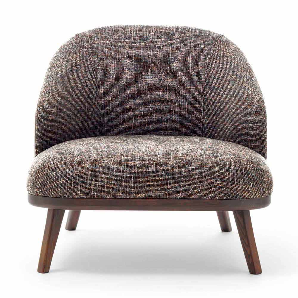 Living room armchair in fabric with wooden base Made in Italy, luxury.