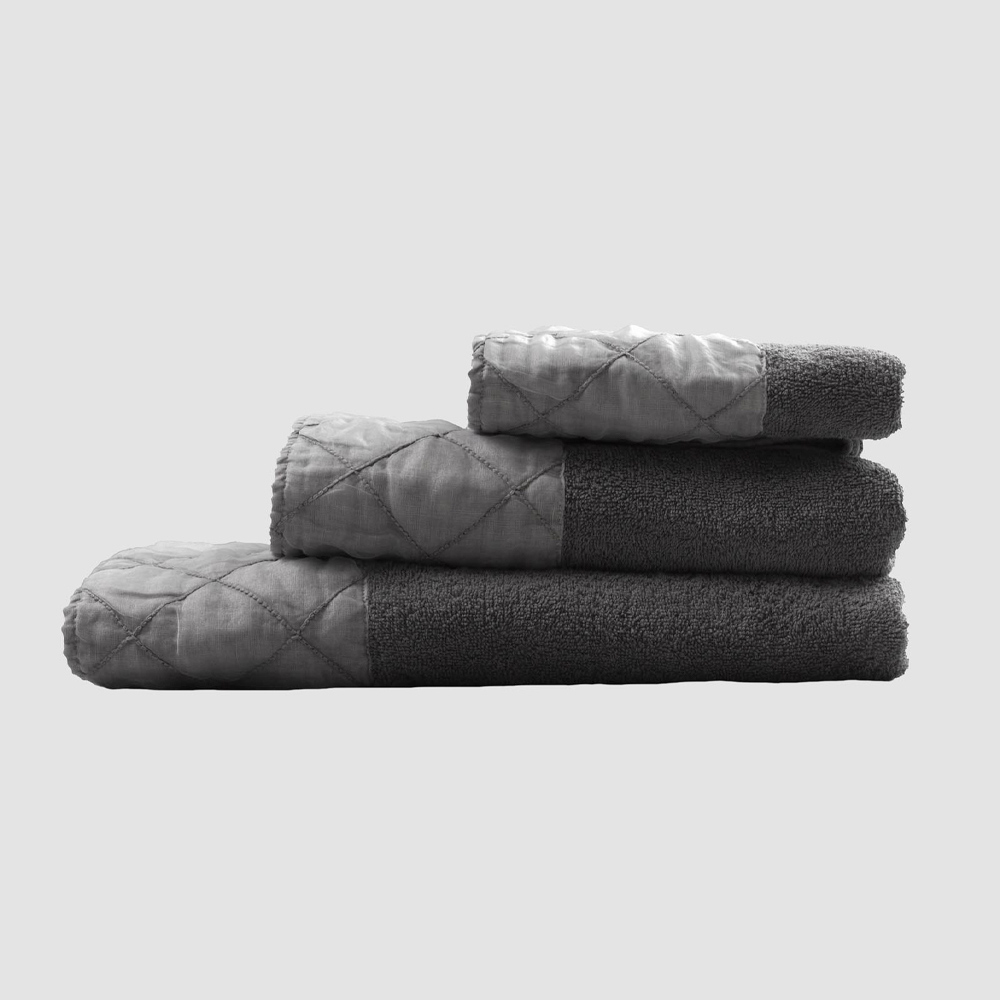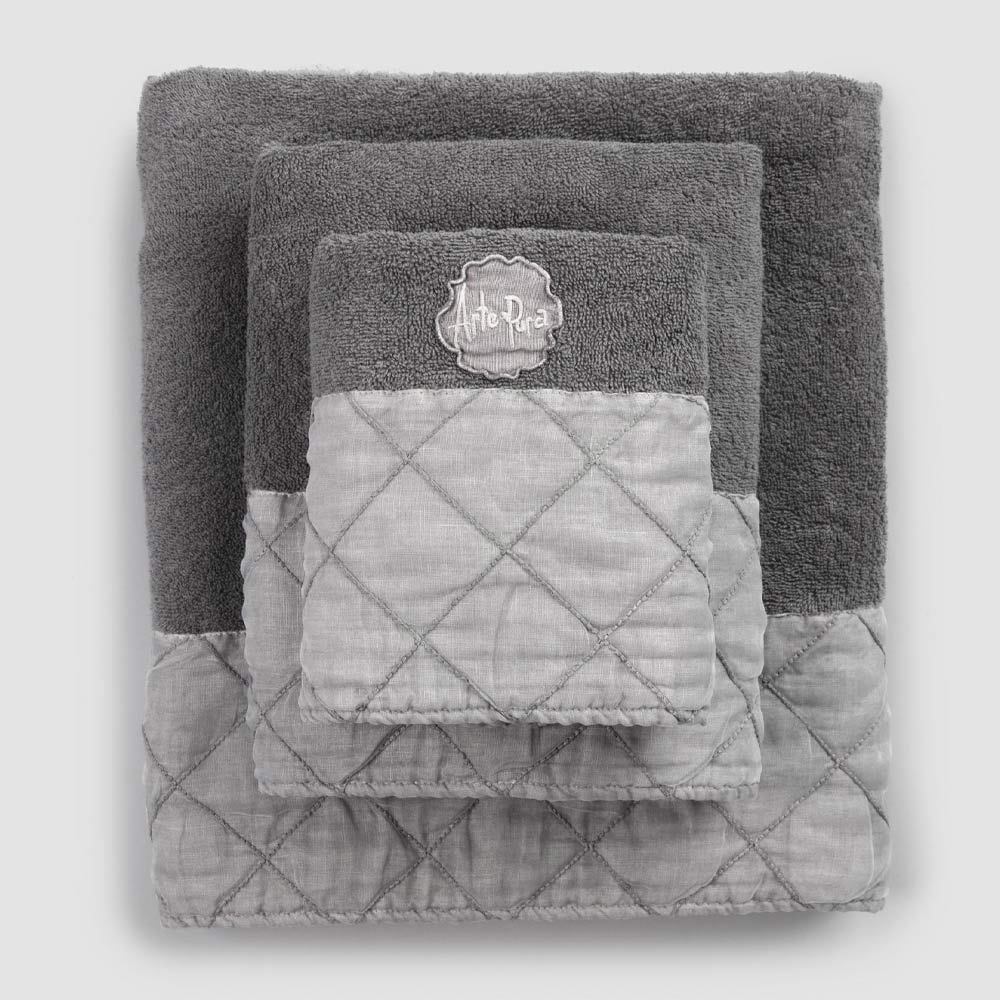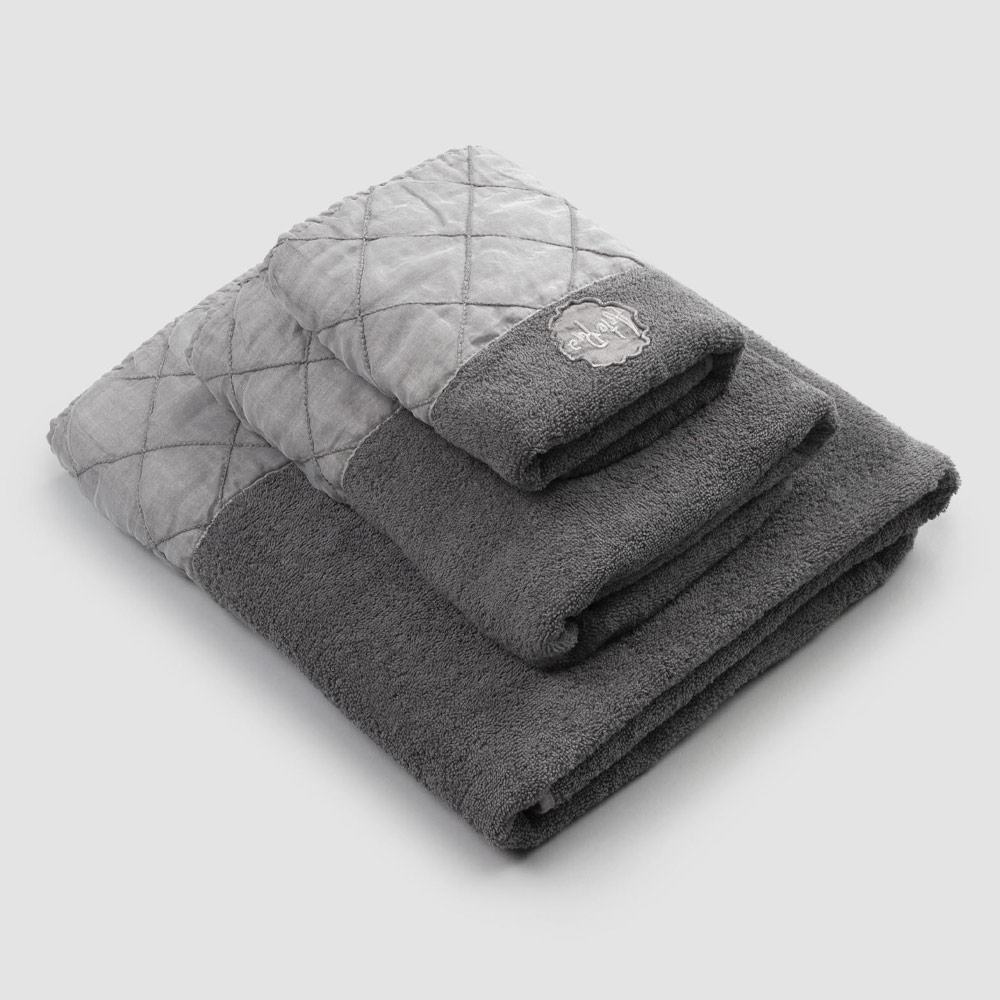 face and guest towels and shower towel in cotton terry , with an anthracite gray