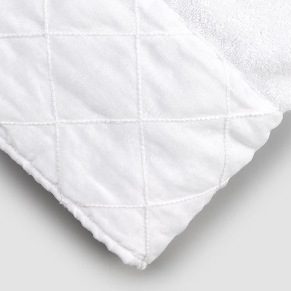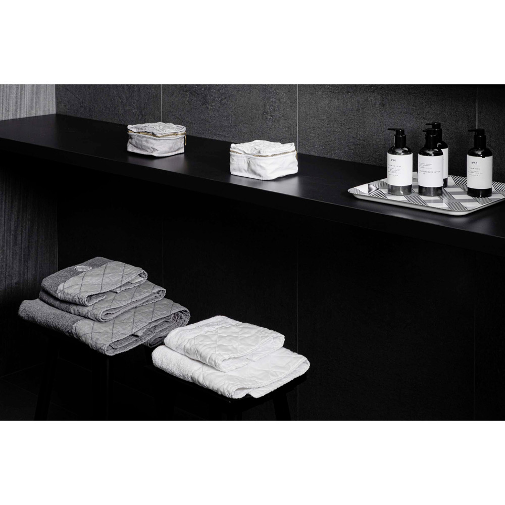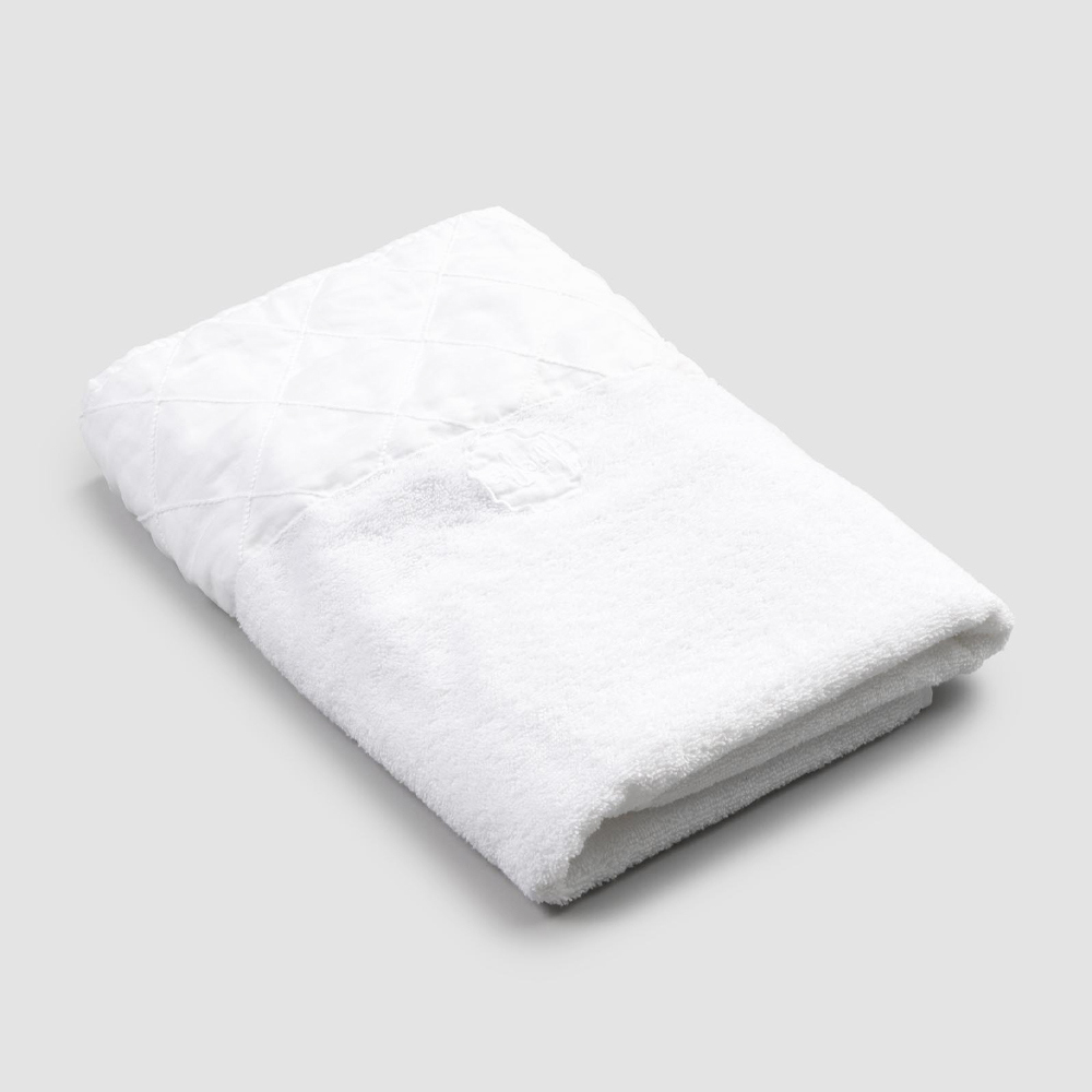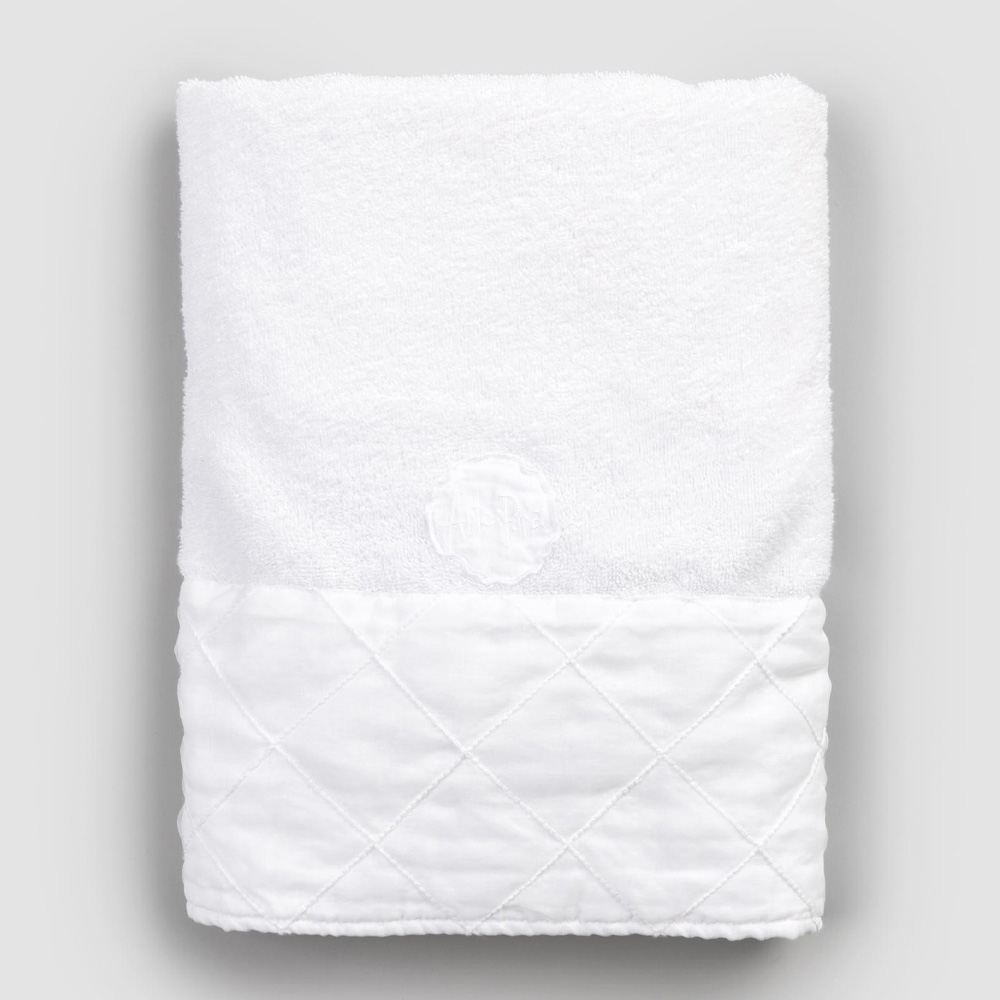 The value of tradition joins the modern lifestyle with the white cotton terry face towel with geometric decoration .
