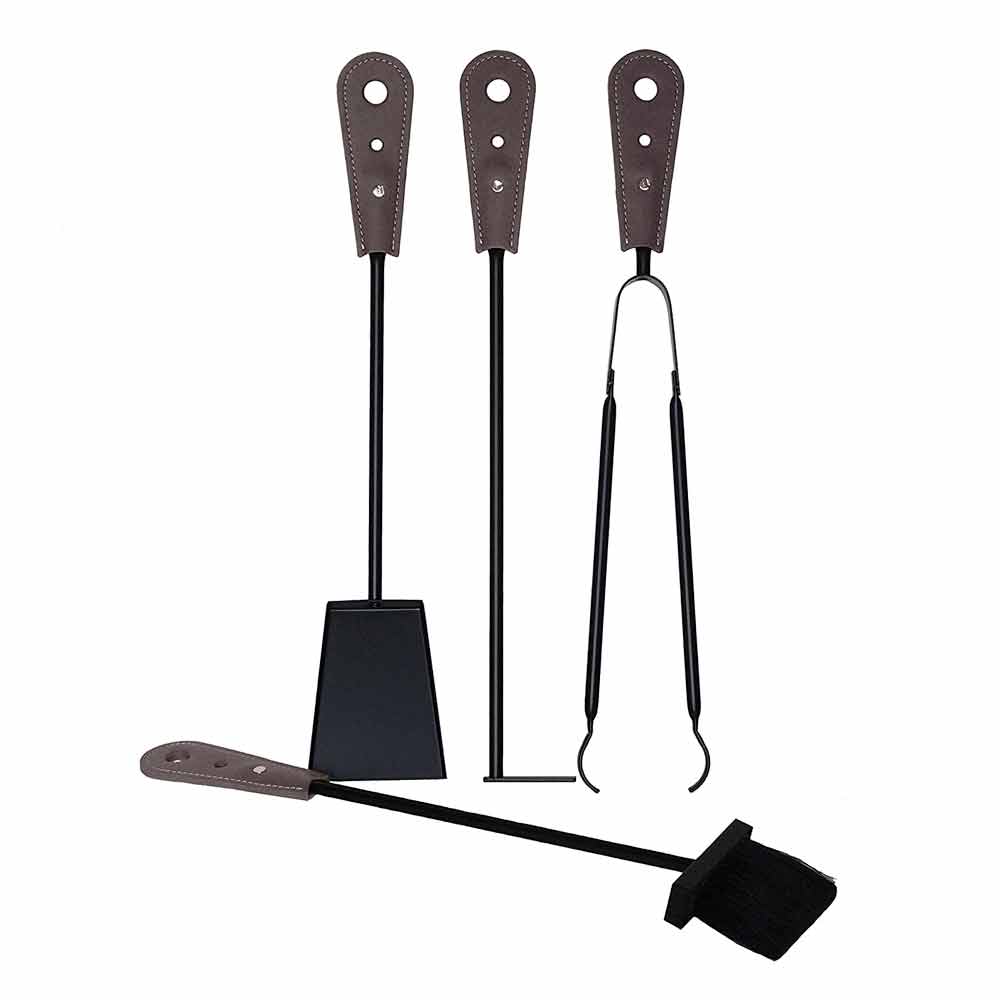 The practical Nidac iron holder is made of regenerated leather and features a plywood bottom, also covered in leather. The interior is made of fireproof material. To complete the composition, a set of fireplace irons made of painted steel and complete with leather handle. The set of accessories for the fireplace includes: scoop, poker, spring and toilet brush, all 65 cm long.