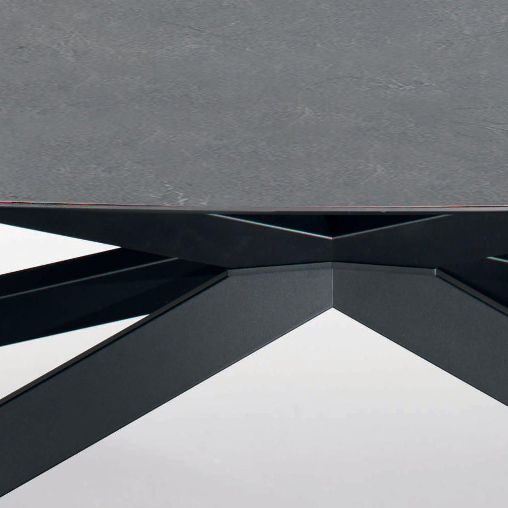 Fixed living room table with laminate top ,30° bevelled edge, black lacquered steel base with adjustable feet. All the mastery and quality of Italian artisans are contained in this product, where the best materials have been chosen and maximum attention has been paid to every single detail . We wanted to combine modern style with functionality to create a table that is not only beautiful to look at but also usable in different occasions.
