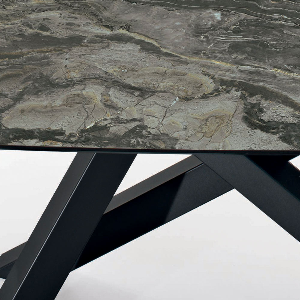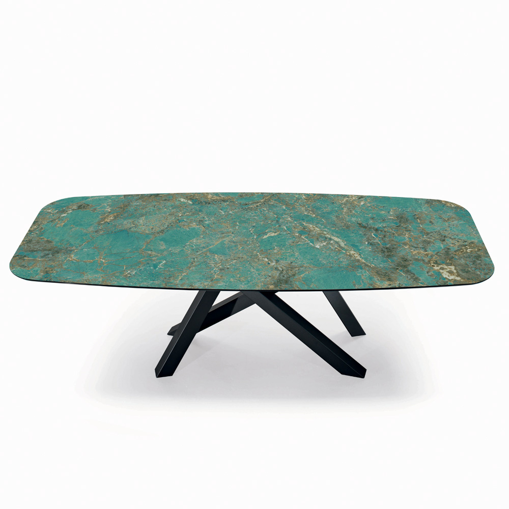 Fixed barrel-shaped living room table with ceramic top,45° bevelled edge, steel base with adjustable feet. Modern style and elegance meet in this product which completes and makes every domestic and contract environment unique. Thanks to the finishes and materials chosen, all the quality of Made in Italy is guaranteed and a product that is not only beautiful but also functional and practical.