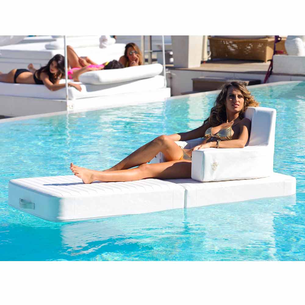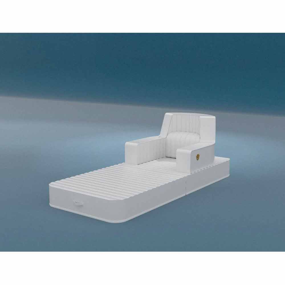 Floating pool lounge chair Trona, white color, made in Italy Trona is a unique armchair which can be used both as a poolside armchair and a floating pool lounger. It is made of white eco-friendly marine faux leather and EPS. This kind of faux leather is designed for outdoors and it is certified, water-resistant and fireproof. The outdoor chair Trona is completely cutted and hand-sewn in Italy.