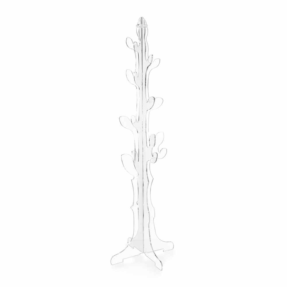 Transparent plexiglass floor hanger for modern design entrance in the shape of a tree, made in Italy.