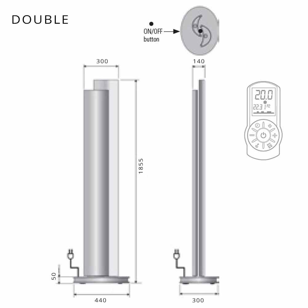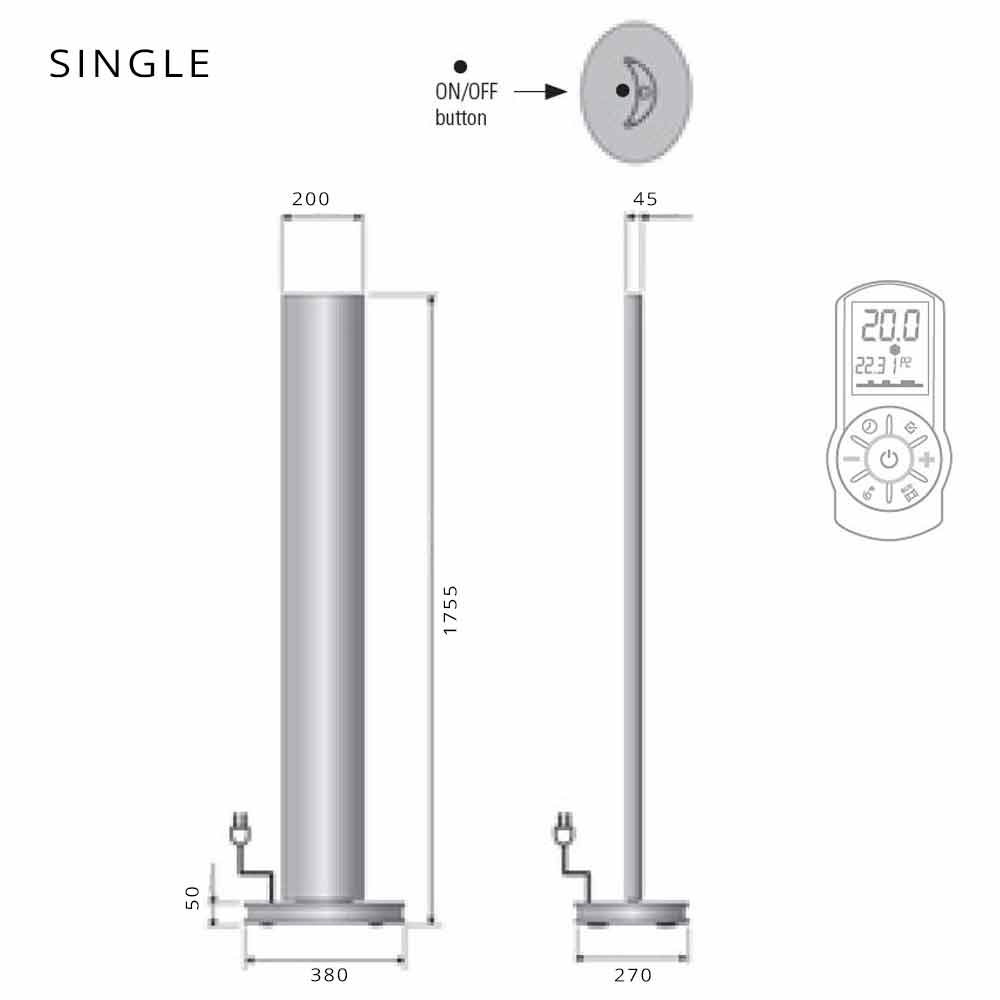 This heater has 250 watts of power for the single version and 500 watts for the double version, supplied with standard remote control for adjusting the LED lights and the thermostat with daily / weekly programming. 1.5 meter cable with schuko plug. 230 Volt single-phase power supply.
