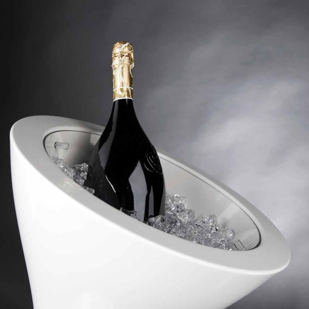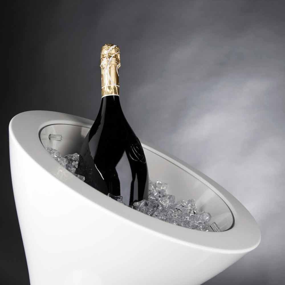 Floor Frappeuse made entirely in Italy in white polyethylene equipped with a bottle holder for ice. From the 100% Made in Italy processing and the use of innovative raw materials, an extremely functional furnishing accessory is born, capable of keeping the temperature of the wines to offer cold while enriching the surrounding furnishings. Ideal for furnishing contract environments but also domestic areas in which to recreate a small and intimate bar, this furnishing accessory is both modern and efficient, offering a perfect solution to complete any stylistic situation in a harmonious and impeccable way for an original and discreet result. at the same time. To increase its value is the 100% Made in Italy processing together with the use of quality raw materials that raise its value and ensure a solid, resistant product with excellent durability .