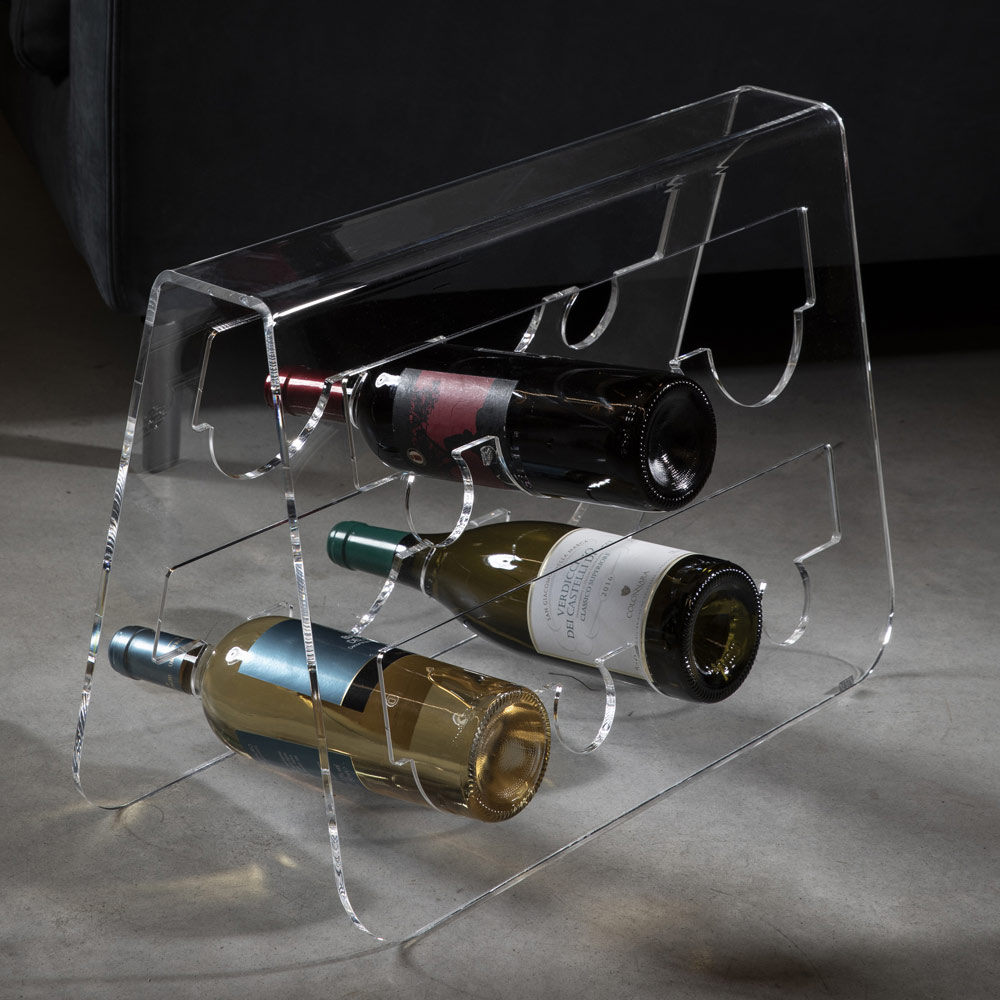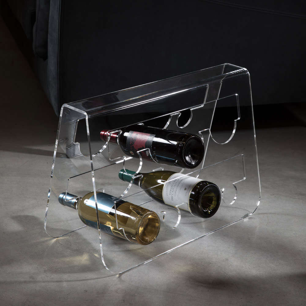 The free- standing wine bottle holder is characterized by an elegant design made entirely of transparent acrylic crystal. With elegant and functional furnishings, it can store up to 8 bottles.