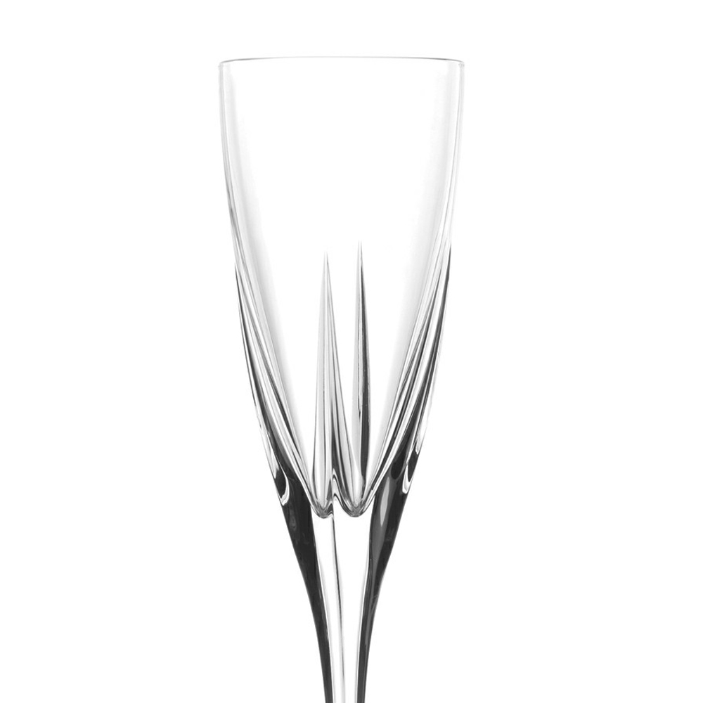 of flute glasses for sparkling wines and champagne features a design inspired by the concept of the Vitruvian man by Leonardo da Vinci which merges the
