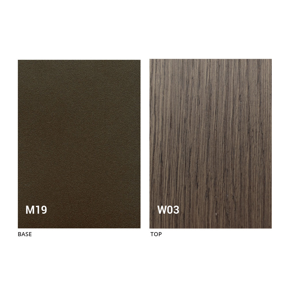 Embossed graphite painted metal structure and back, gray oak seat