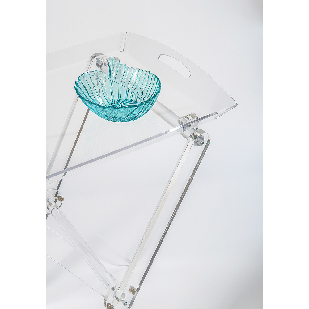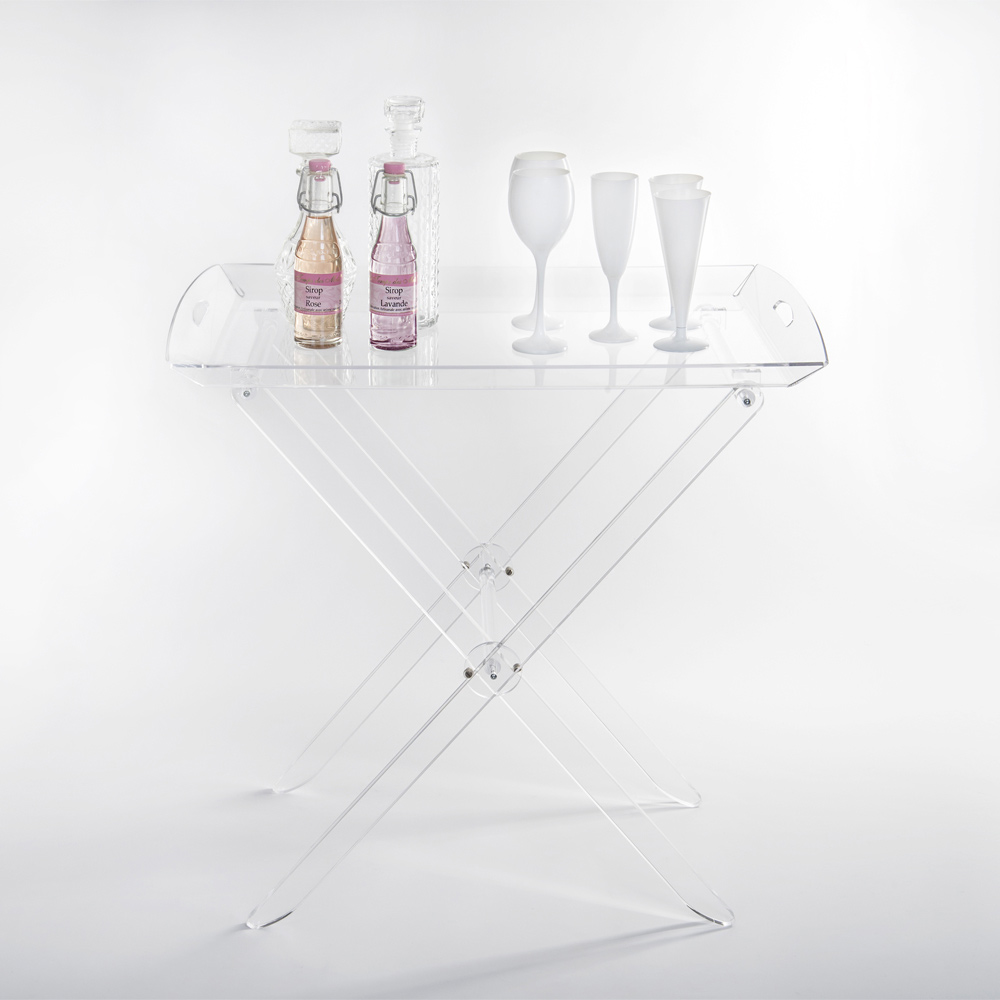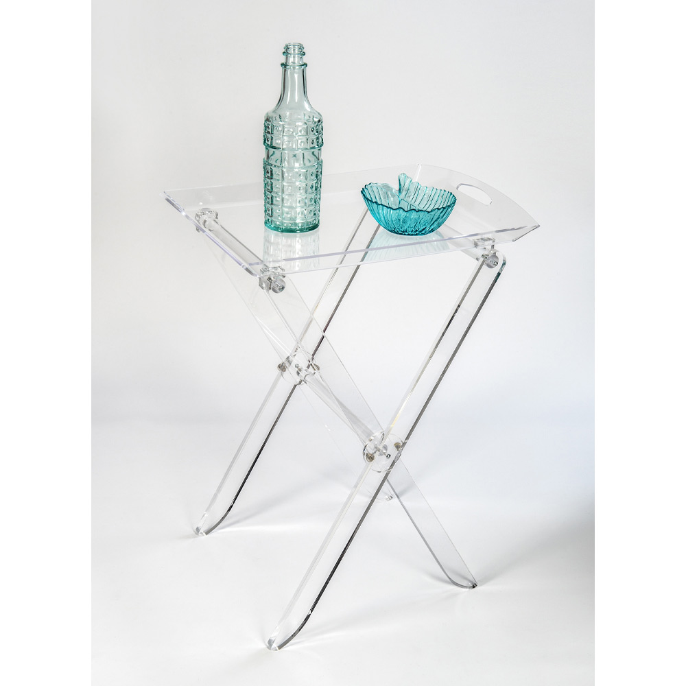 Folding table with tray-shelf in acrylic crystal, 2 sizes made in Italy.