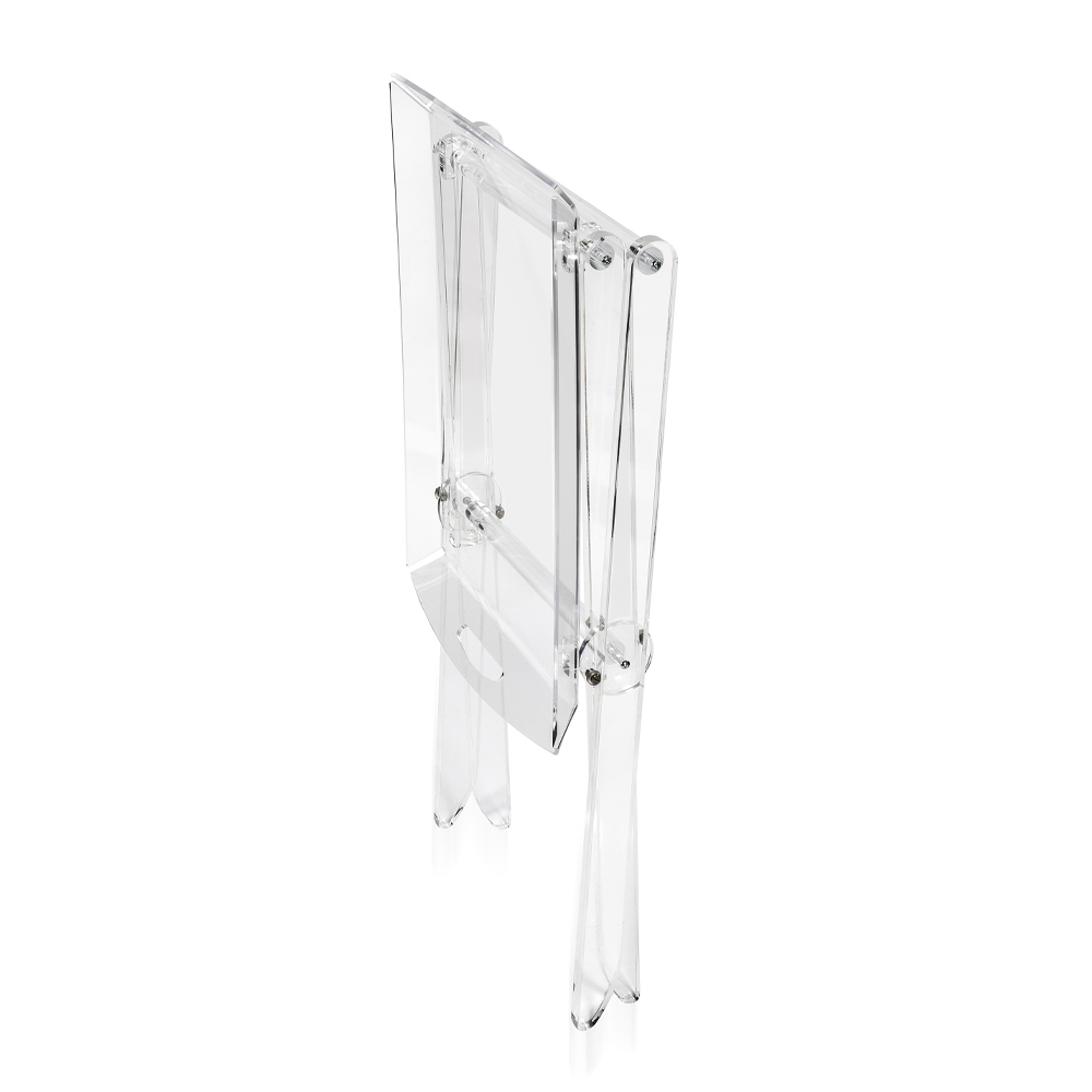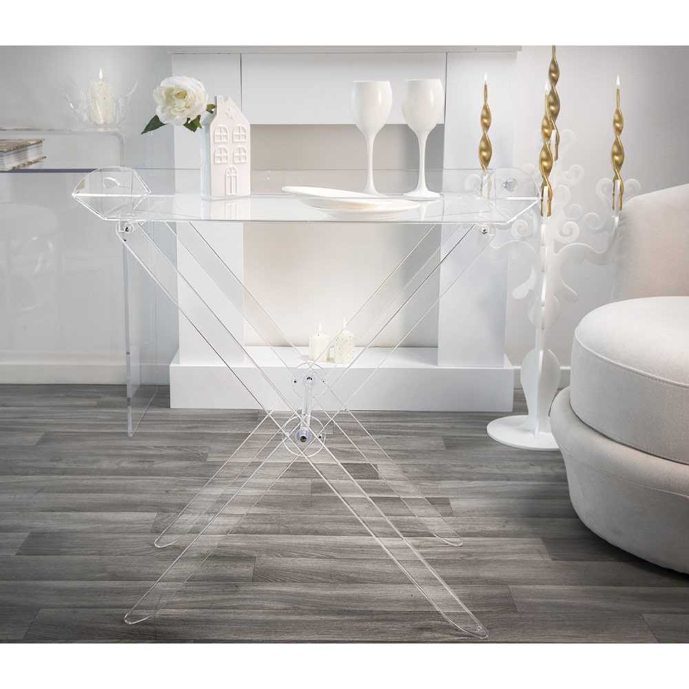 This folding table made of acrylic crystal from virgin polymer is characterized by its versatile and practical design that can be folded up to minimize clutter with a tray-shelf that can be used for breakfast or to serve coffee to guests. Conceived, designed and manufactured in Italy , with Italian materials, the brightness and brilliance constant and unaltered over time.