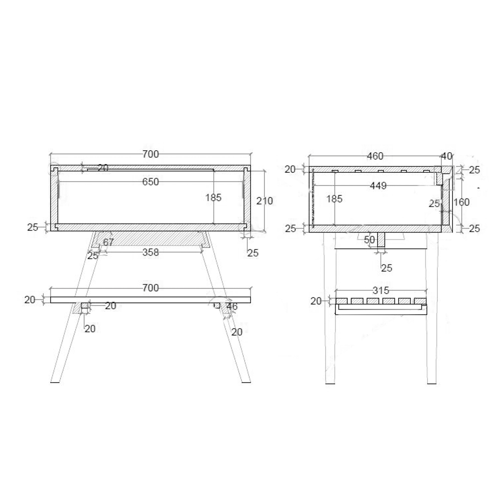 Floor-standing teak bathroom cabinet with white flap drawer.