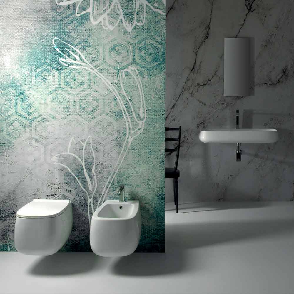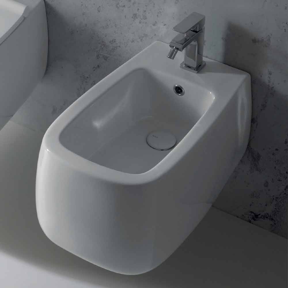 Modern white ceramic wall-hung bidet made in Italy Gaiola