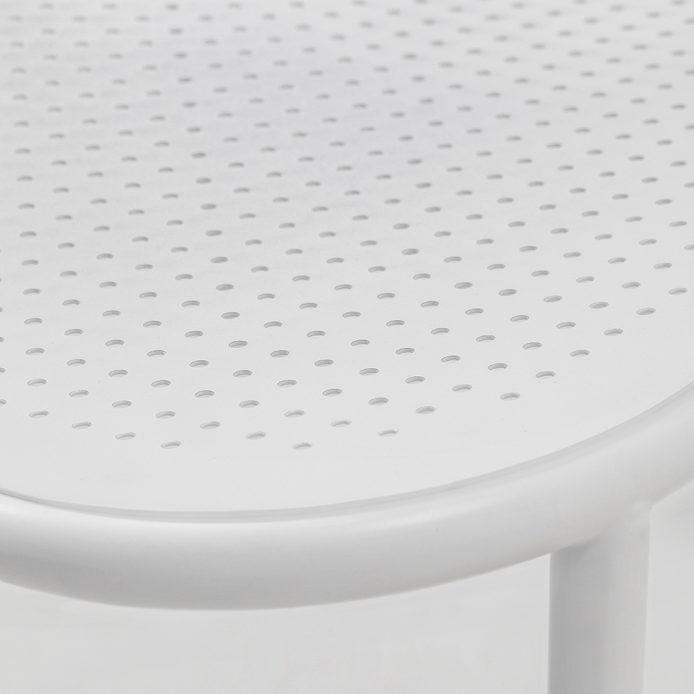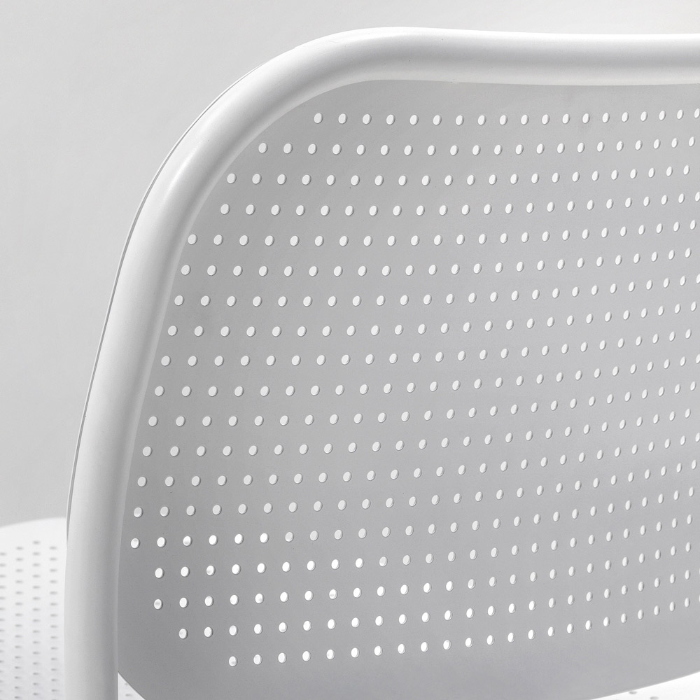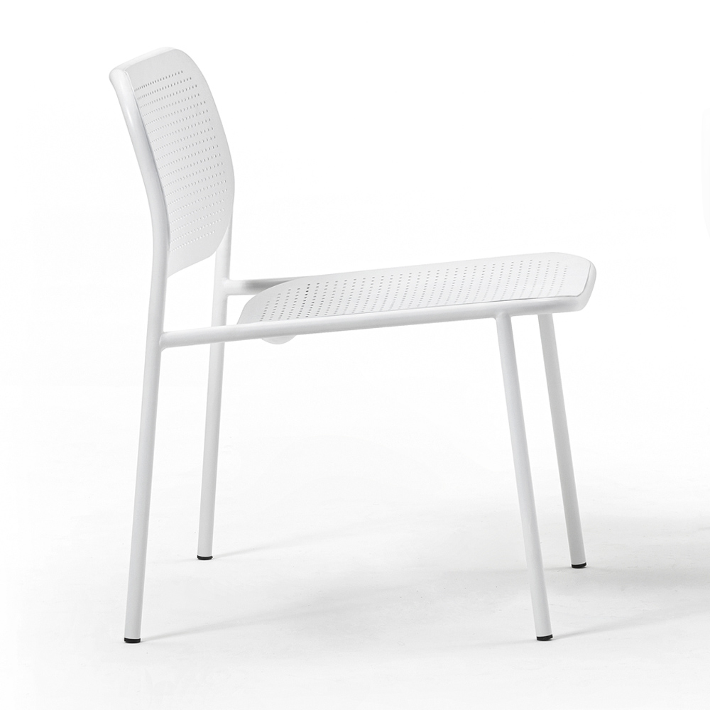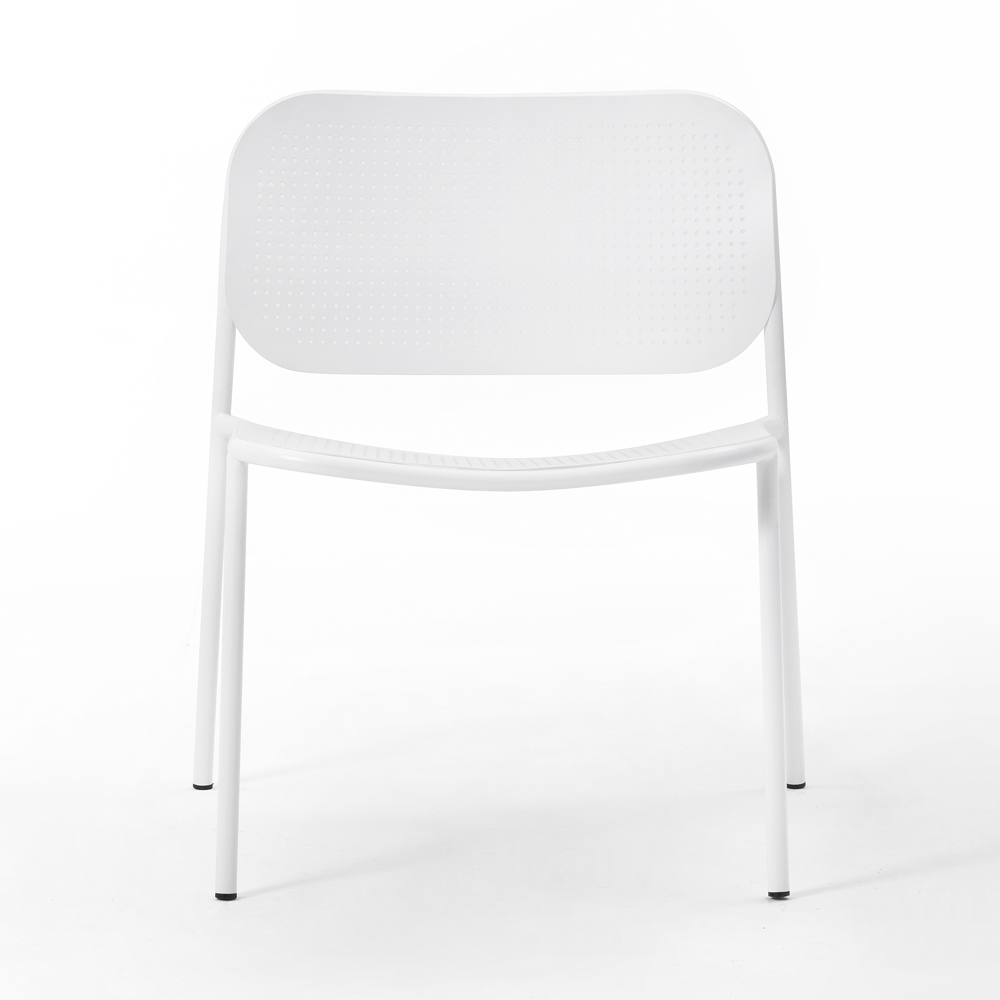 Outdoor armchair entirely made in Italy with painted metal tubular structure completed by the seat and back in sheet metal with perforated weave, an effect that revisits the classic Viennese weaving in a contemporary key. A piece of furniture that through the use of high quality raw materials offers solidity and excellent resistance to any atmospheric agent, proving to be perfect for decorating any outdoor space with its unique character.