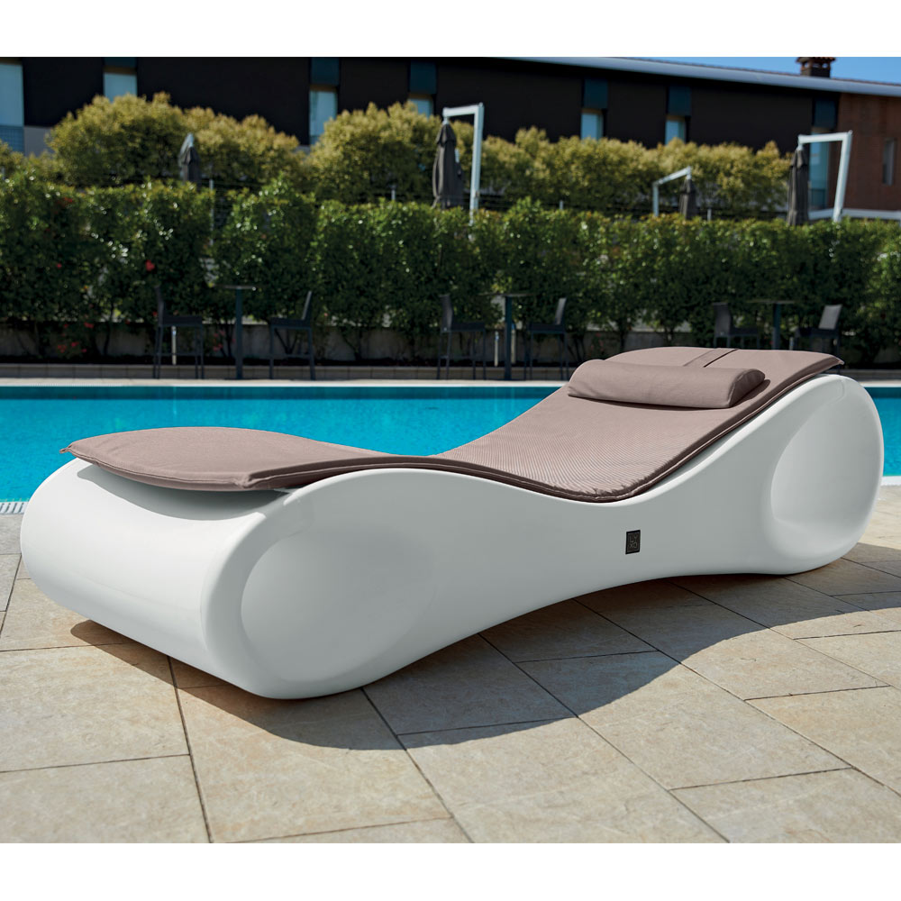 This polyethylene garden chaise longue is made in Italy, characterized by soft lines and an almost enveloping shape that transform it into a perfect combination of design and practicality. It is in fact ideal to be used as a sun lounger in the garden, by the pool or in any other outdoor area. The practicality of this chaise longue also lies in the presence of the hole for the expulsion of the water and the two openings at the ends that can be transformed into a support surface if necessary.