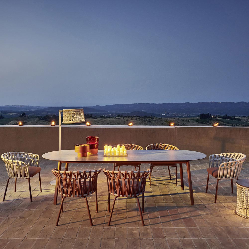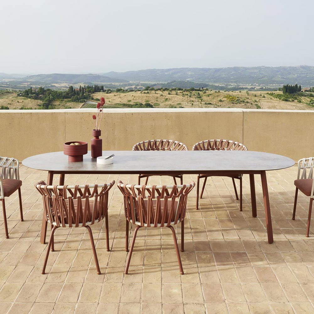 Garden tablemade in Italy with powder coatedaluminum structure and hpl top . Ā Thanks to its linear, elegant and functional design, this table is perfect to complete the furnishing of various living areas, both indoor and outdoor, enriching the aesthetics of the environment with an exclusive touch of personality .