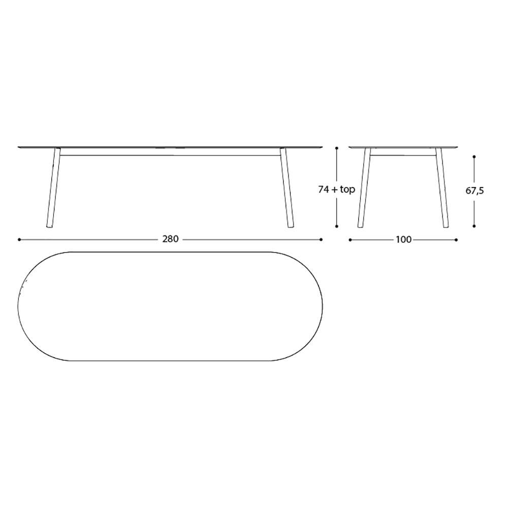 L 280 x P 100 x H 75.2 cm;