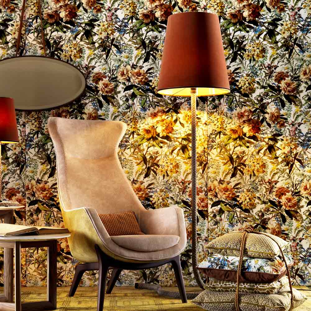 Floor lamp made in Italy in metal and Grilli Snake fabric