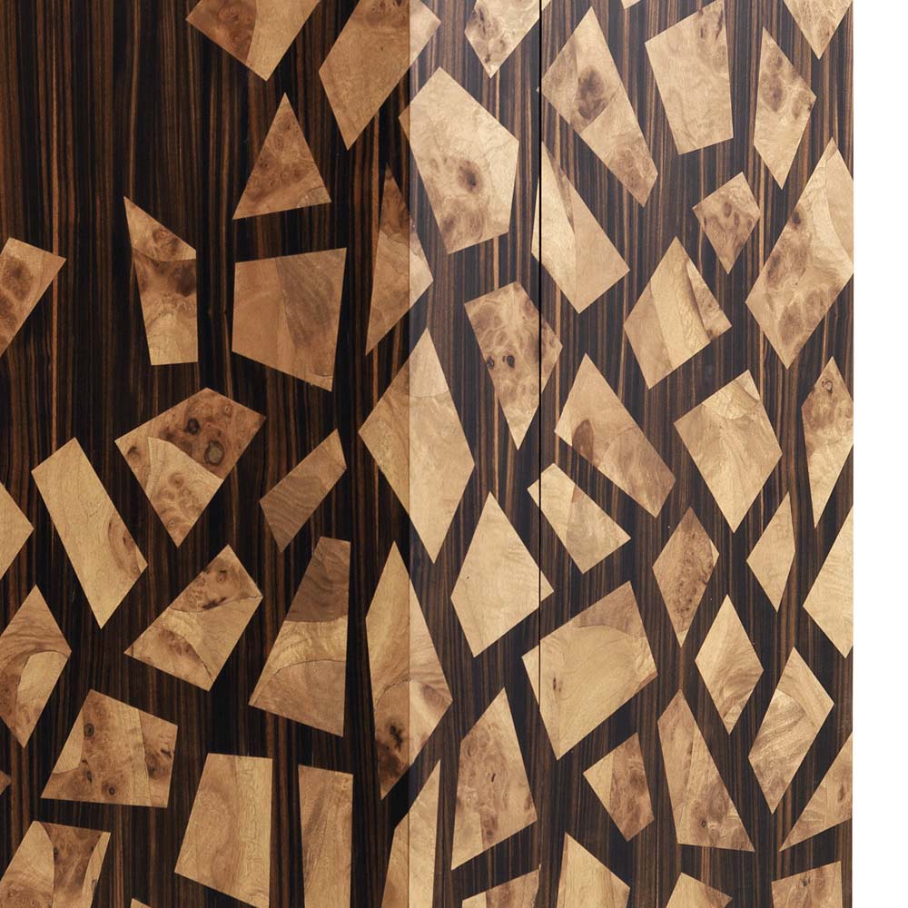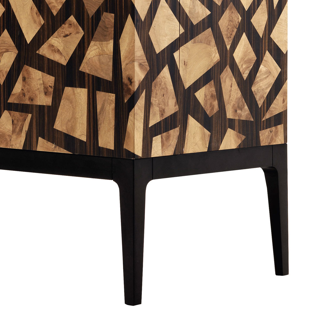 The two-door Zarafa cabinet bar is characterized by an elegant and refined style thanks to its geometric lines that recall the mantle of a famous giraffe given to the King of France in the 19th century.