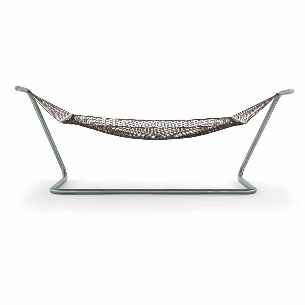 Hammock in black garden net with pedestal, modern design made in Italy.