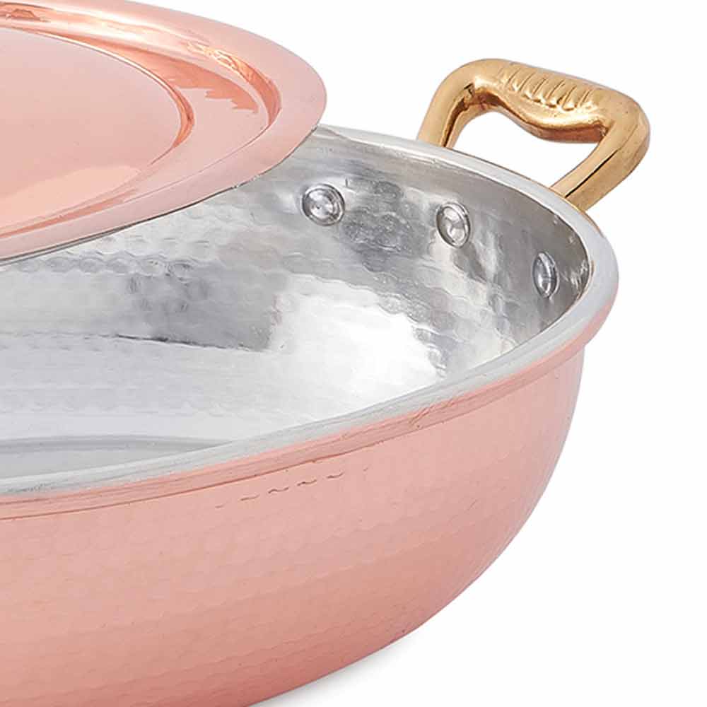 copper hammered by hand with lid and handles, expresses the absolute mastery of craftsmanship according to the