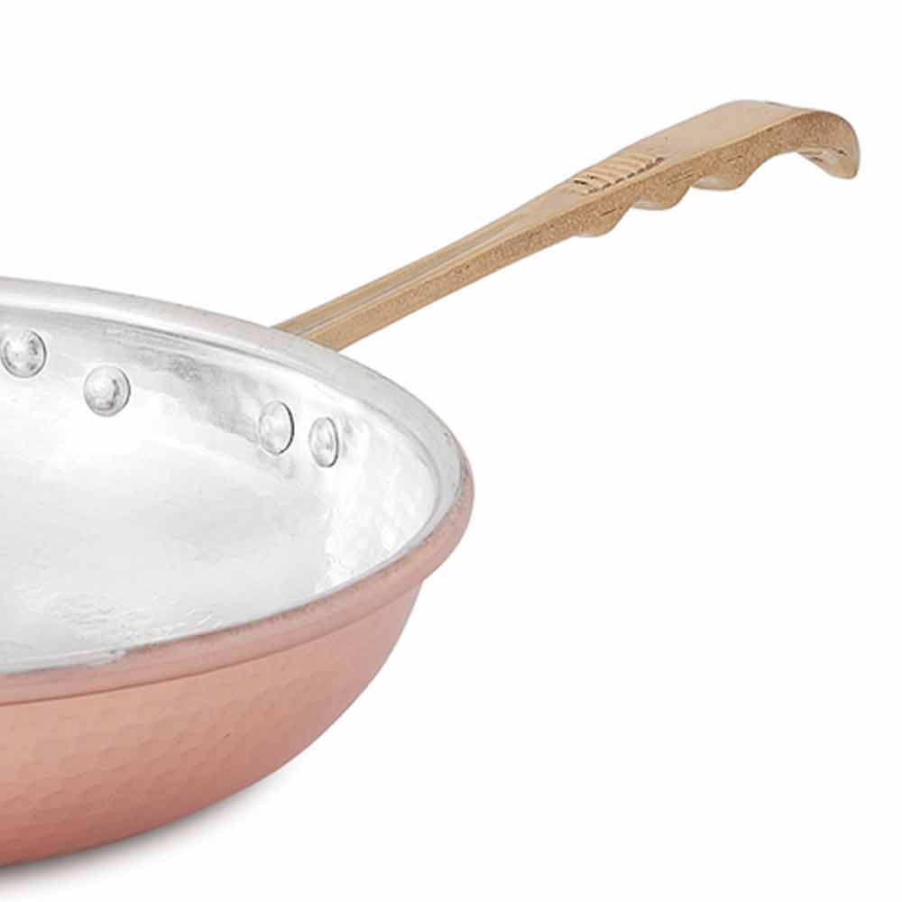 solid copper hammered and tinned by hand over the fire is ideal for frying, pancakes, sautéing pasta or glazing vegetables.