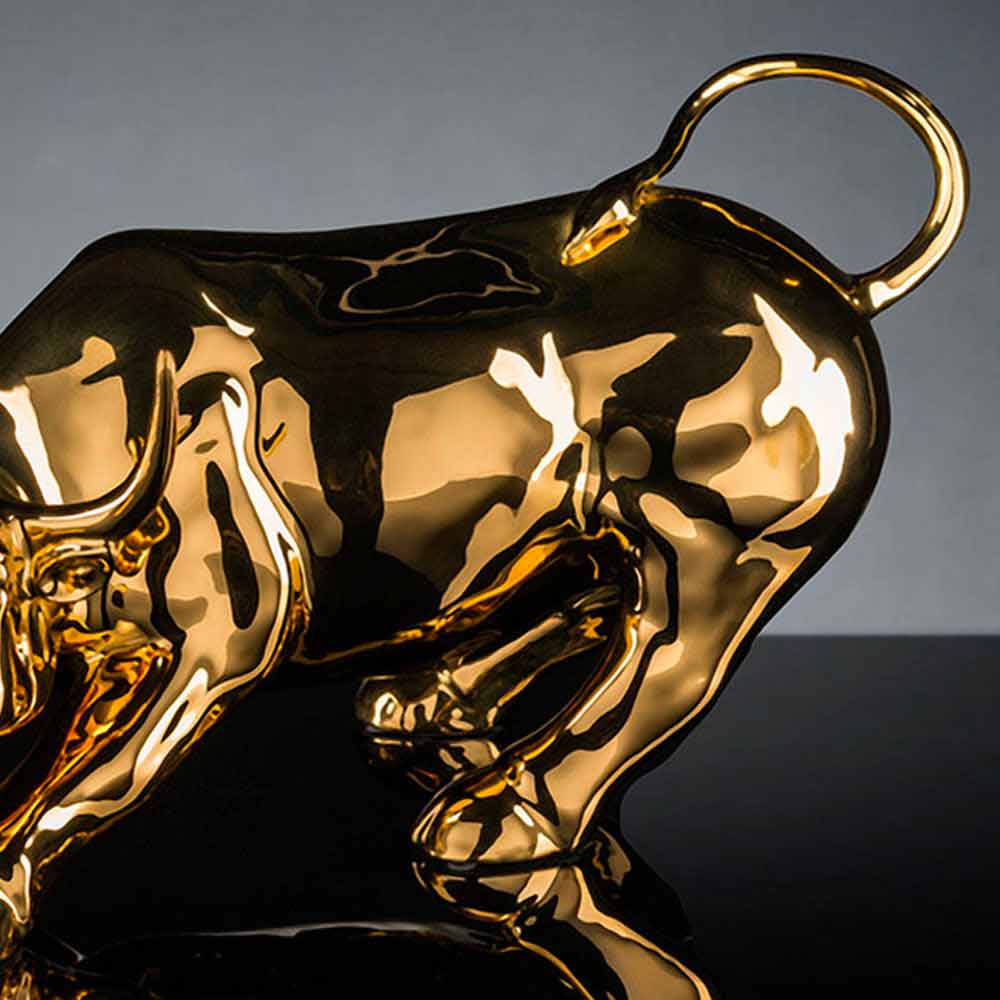 Decorative statue in the shape of a bull made of colored ceramic handmade in Italy. An elegant object that comes from the hands of skilled Italian artisans capable of giving life to real works of art thanks to the encounter between passion and a strong respect for traditions handing down processing techniques that underline the value and value of each complement for an exclusive and quality result . An idea of colorful and original furniture capable of enriching any space in the house with personality and elegance, bringing with it all the liveliness of wonderful colors and new shapes and proving to be a perfect solution for those looking for a creative and eccentric style for their home.