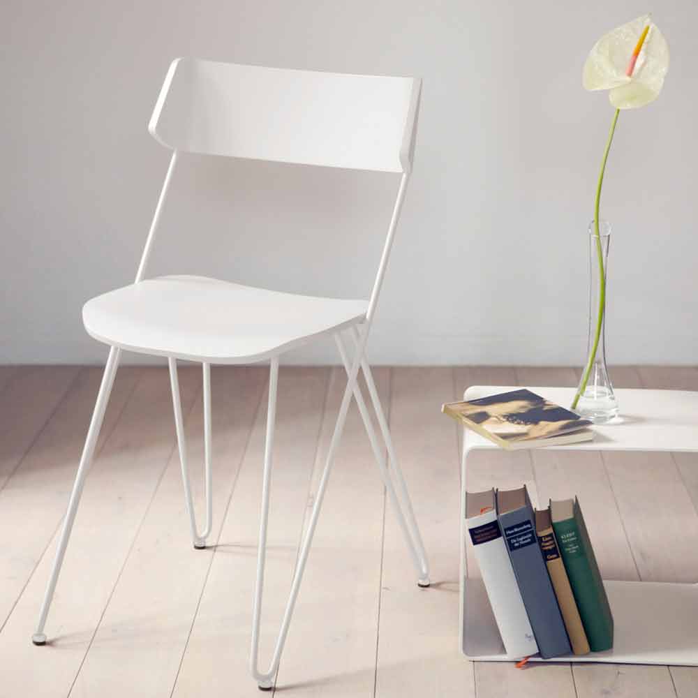 An innovative idea albeit in its simplicity. What characterizes the aesthetics is the particularity of the tubular legs that create the sensation of a push upwards by gently supporting the seat and creating the illusion of a backrest that seems to float. The slender frame and the essentiality of the shapes make it an extremely versatile chair, capable of enriching the furnishing of its spaces in a sober and discreet way, creating at the same time a perfect harmony of styles and a warm and welcoming atmosphere.