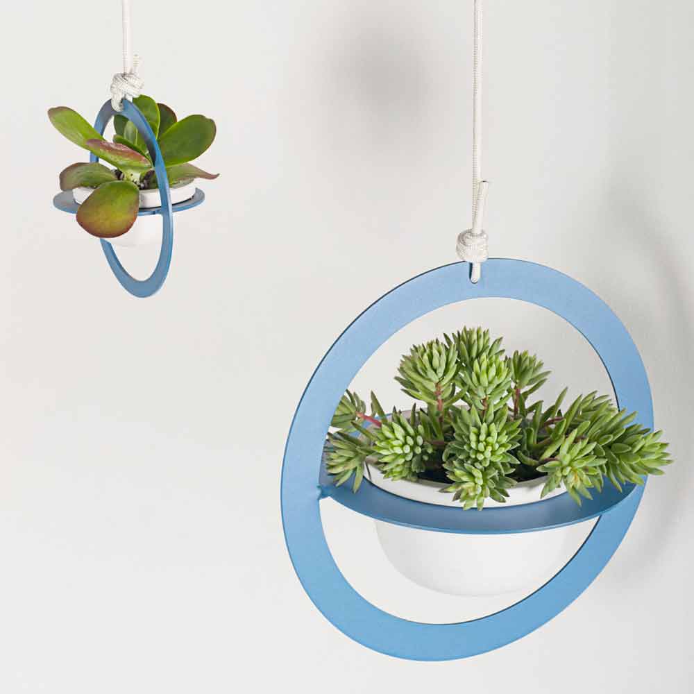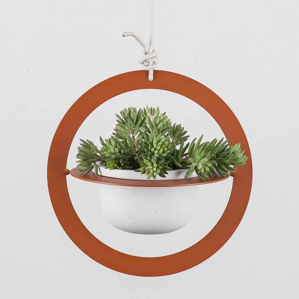 Hanging plant pot made of steel and Made in Italy design ceramic.