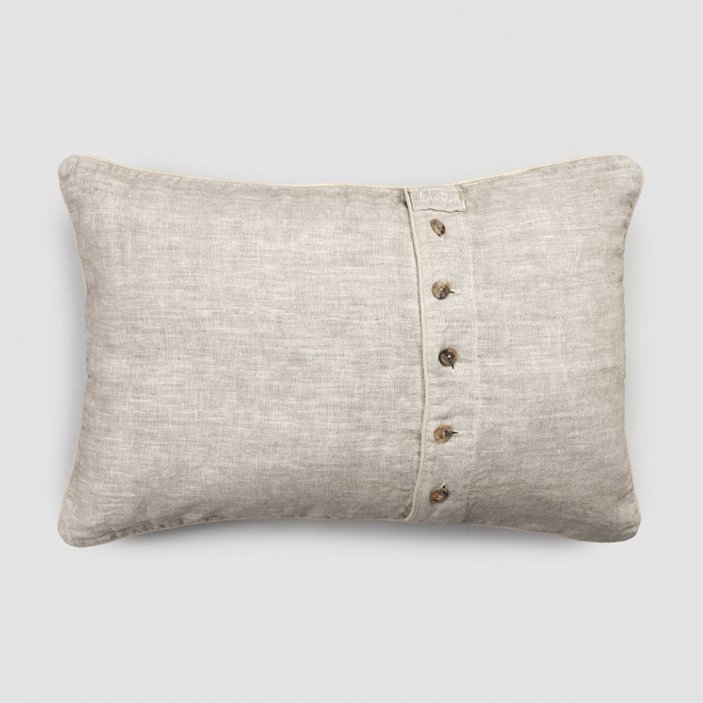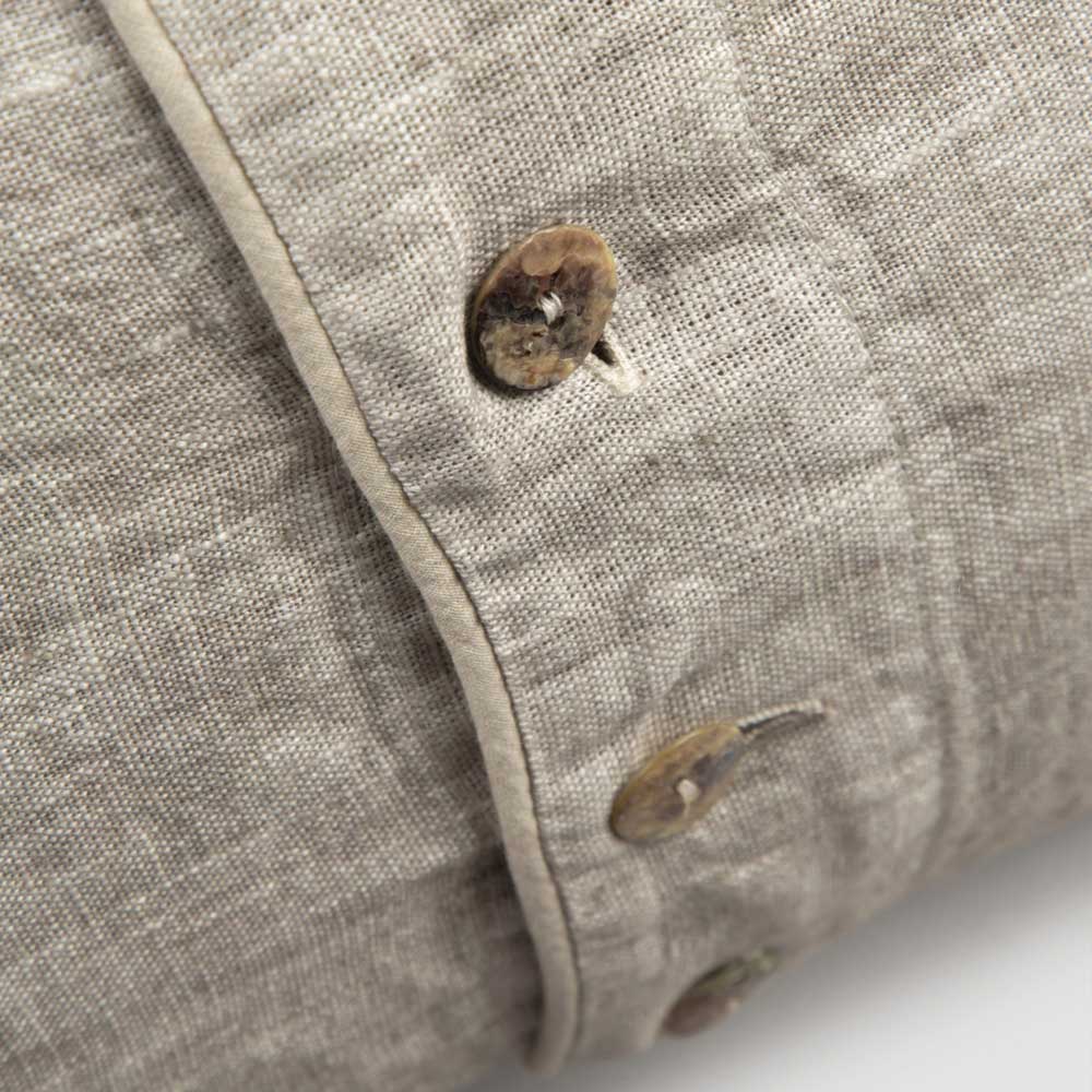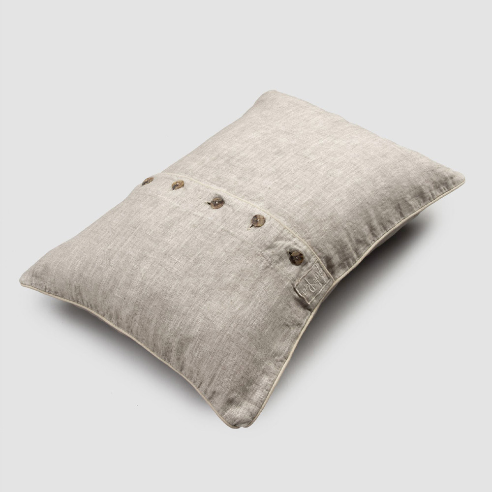 linen pillowcase embellished with a central row of agoya mother-of-pearl