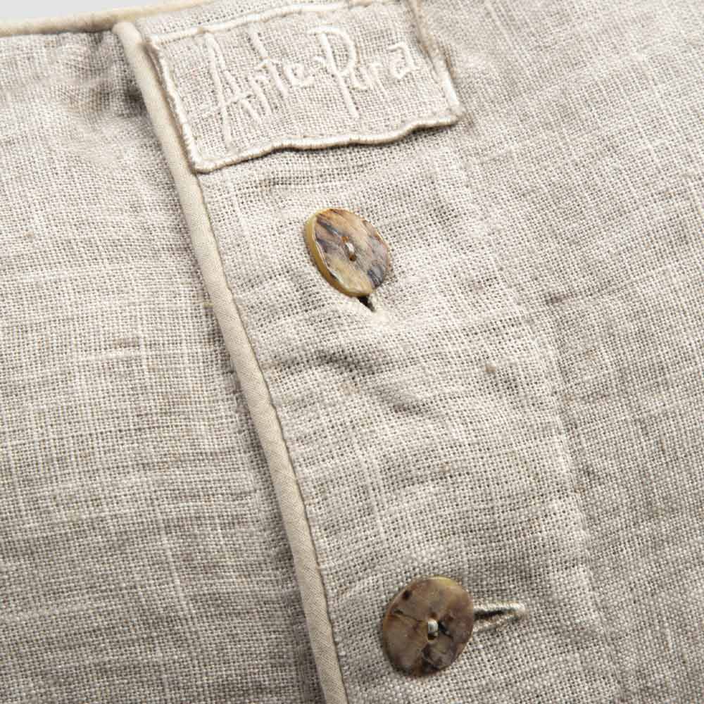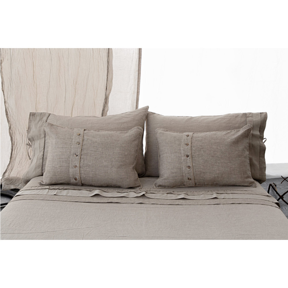Rectangular linen pillowcase with lace, buttons and elegant border made in Italy.