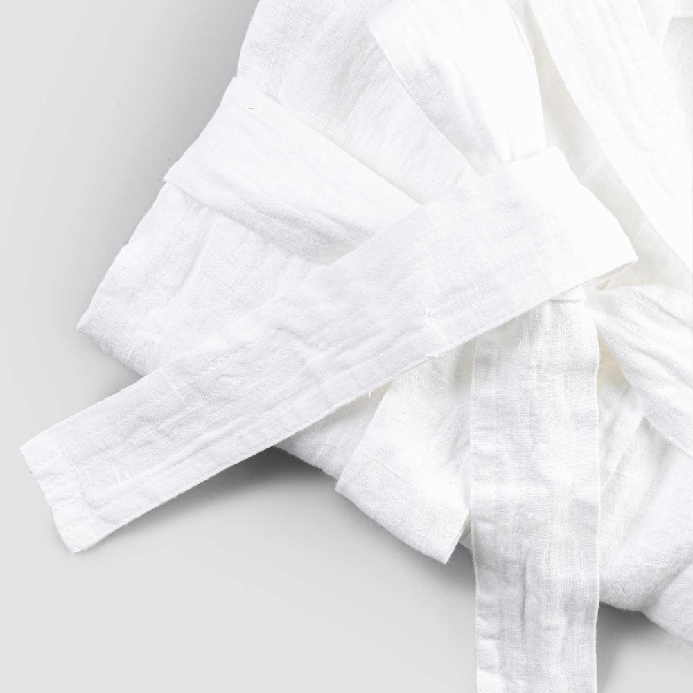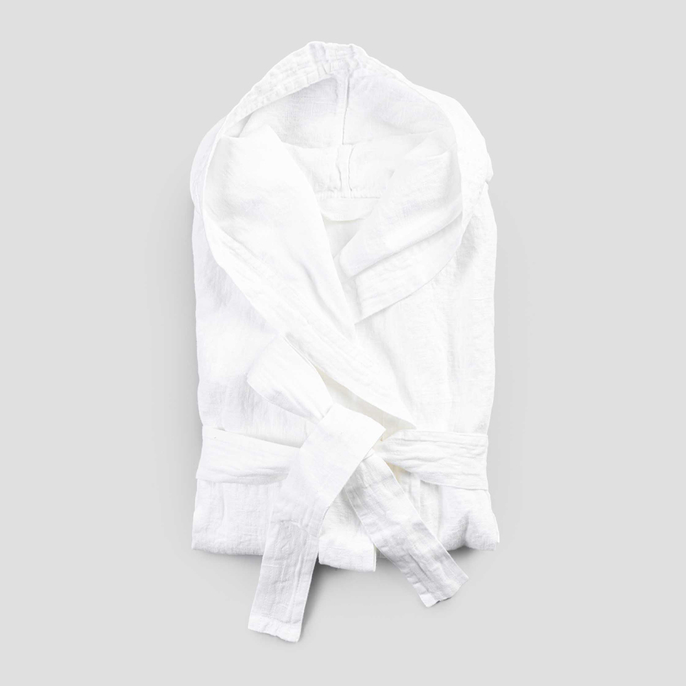 White linen bathrobe with hood, refined luxury design made in Italy.