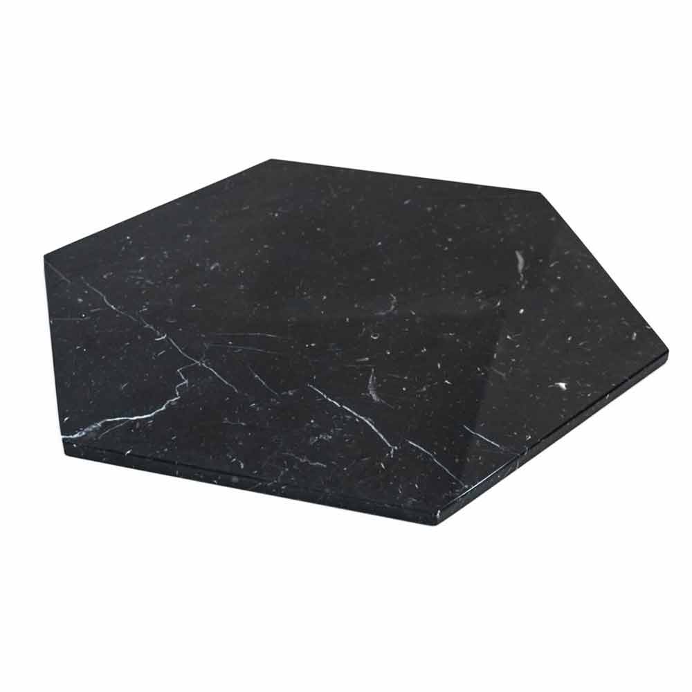Hexagonal design serving plate in white or black marble, made in Italy.