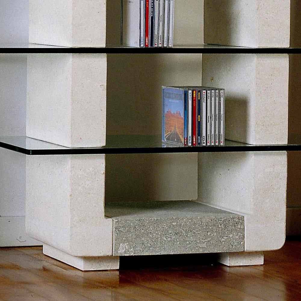 The TV stand Xeni is entirely made in Italy. It is made of white and grey Vicenza natural stone and it is provided with crystal shelves( 12 mm thick). The natural stone has been treated with ecological water-base impregnator, in order to make the cleansing process easier.