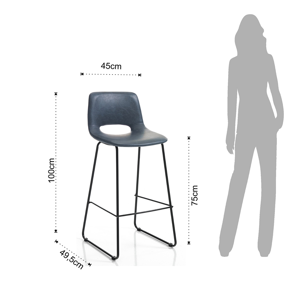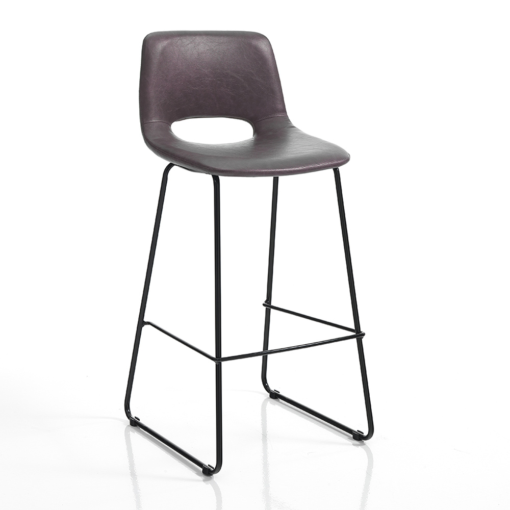 High kitchen stool with structure in matt black painted metal and upholstered seat covered in aged effect synthetic leather . A vintage style revisited in a contemporary key to give life to a furnishing accessory with a strong charm of yesteryear and an elegant personality that fits perfectly with the most varied stylistic situations within domestic living areas but also in contract environments such as bars and restaurants where it completes the decor with character and taste .