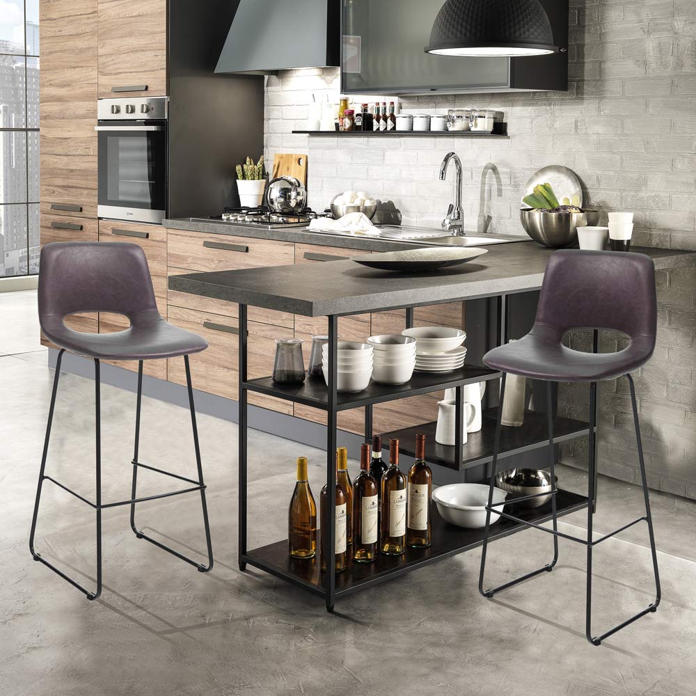 High kitchen stool in painted metal and synthetic leather, 2 pieces.
