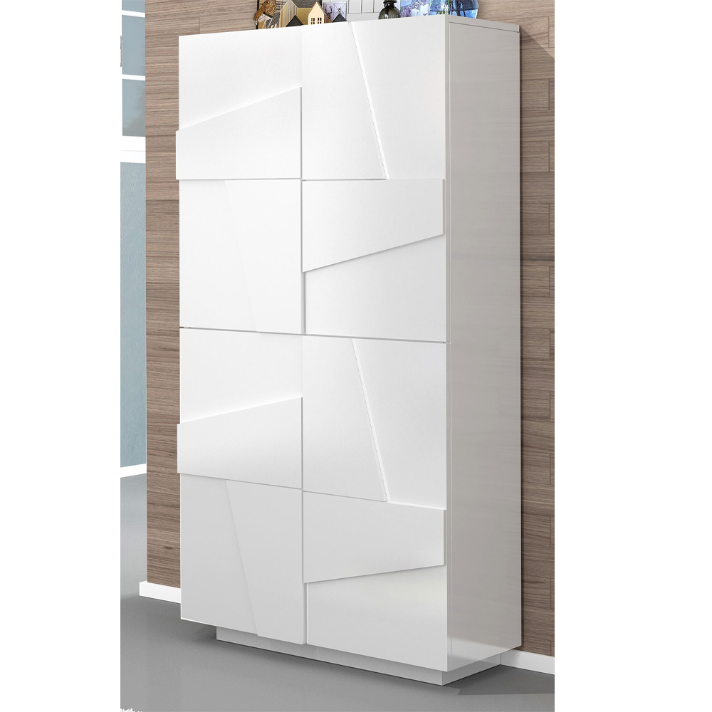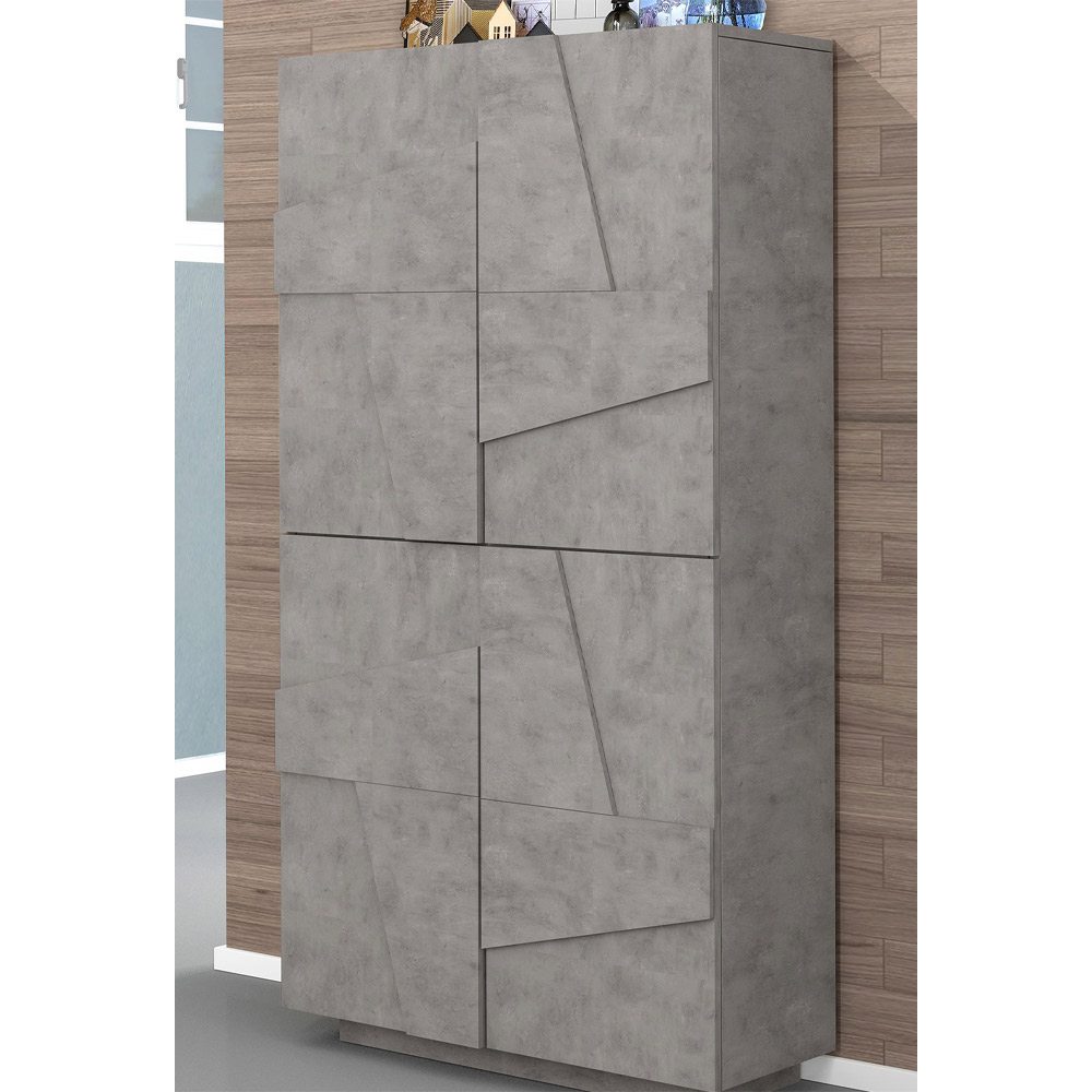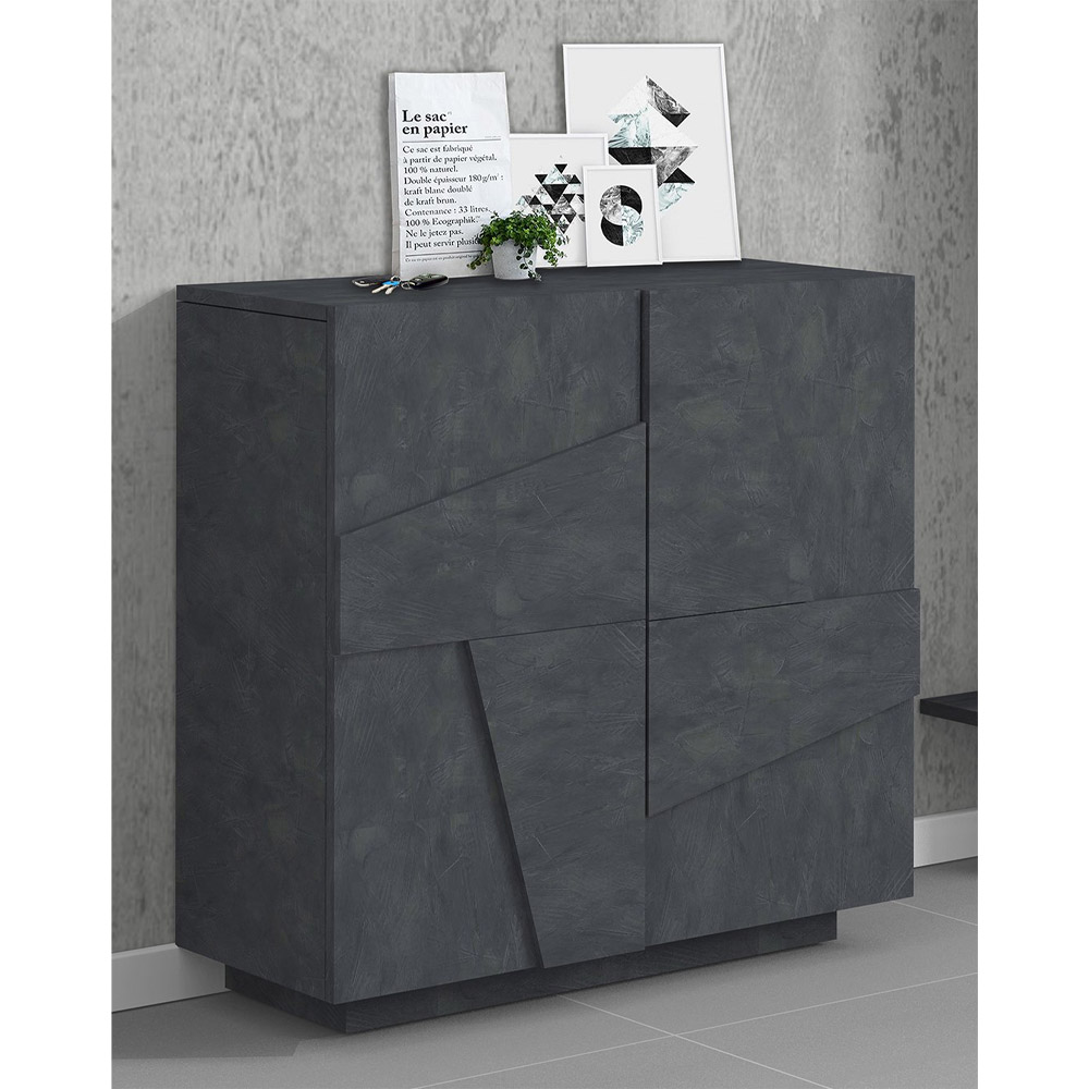 Made of sturdy and resistant melamine sustainable wood , it is available in two different heights with 2 or 4 doors a clean and handle-free look that gives the cabinet a particularly contemporary look, enriched by an oblique cut surface on the doors, for give a modern and original touch.
