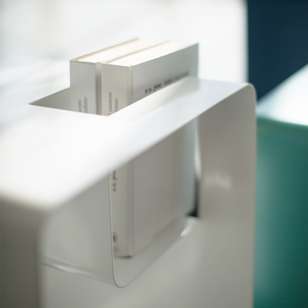 This light and versatile magazine and book rack, which can also be used as a bedside table or coffee table, adapts to any space thanks to its small size of 2 mm thickness.