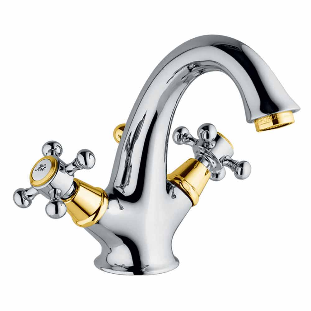 Classic brass single-hole mixer for bathroom washbasin Made in Italy.