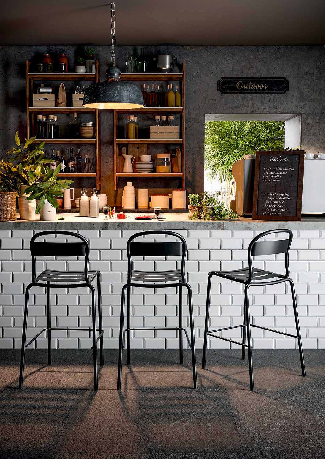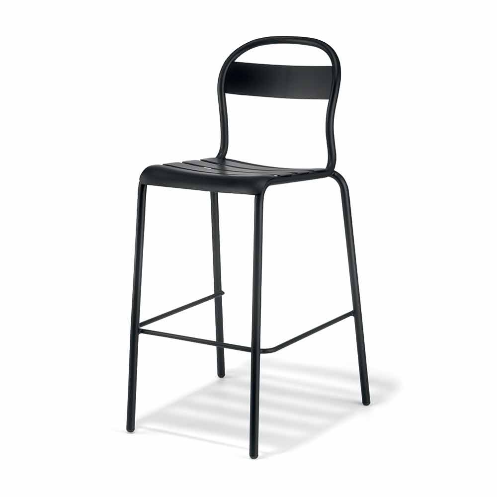 Trixie is a high outdoor stool with a practical and versatile design whose thin footrest ensures its stability. The stool is entirely made of aluminum, which makes it perfect for use in tall kitchens or bars both outside and inside, for domestic and non-domestic use. Trixie is also stackable up to a maximum of 8 units allowing you to optimize spaces at best.