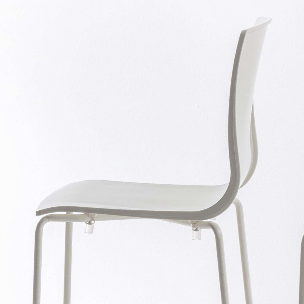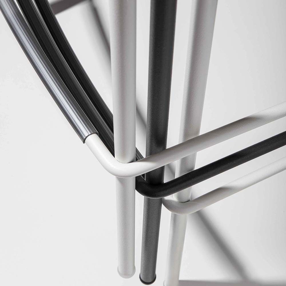 Modern stool with seat entirely made of polypropylene and base in painted metal . Simplicity and essentiality are the keywords that best describe this stool ideal for your kitchen. Each section of its structure is linear and clean, characteristics that allow it to adapt to any furnishing situation thanks to the sober and discreet finishes that are proposed. It is therefore the perfect idea for those looking for a modern product that can ensure excellent solidity as well as an excellent aesthetic side that, however simple, is able to create a perfect harmony between the styles within the room. Furthermore, the possibility of stacking them increases their practical and functional side even more, allowing you to optimize space when necessary.