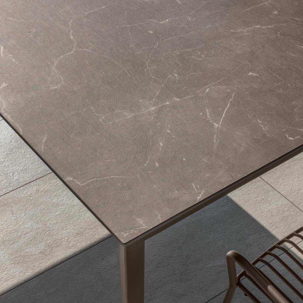 Outdoor dining table with hpl top and metal base Made in Italy.