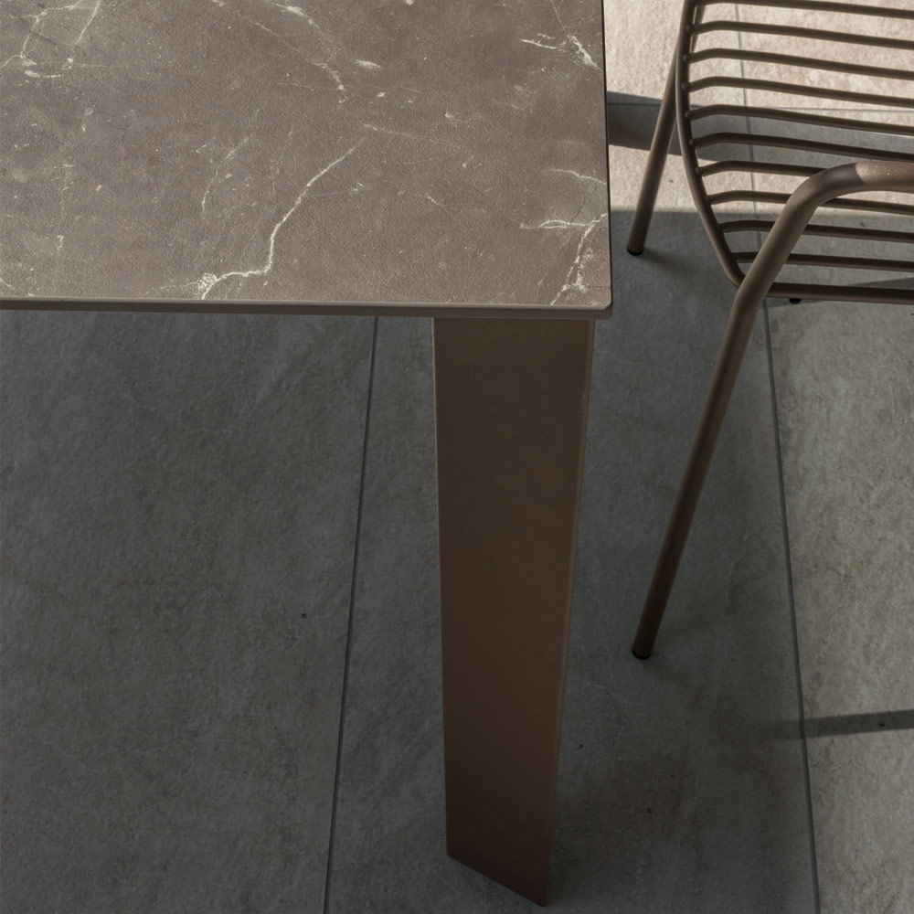 The elegant finishes proposed for the top fit perfectly into any context of relaxation in domestic situations such as gardens but also in contract environments such as bars and restaurants thanks also to the extreme simplicity of its shapes which give the table a