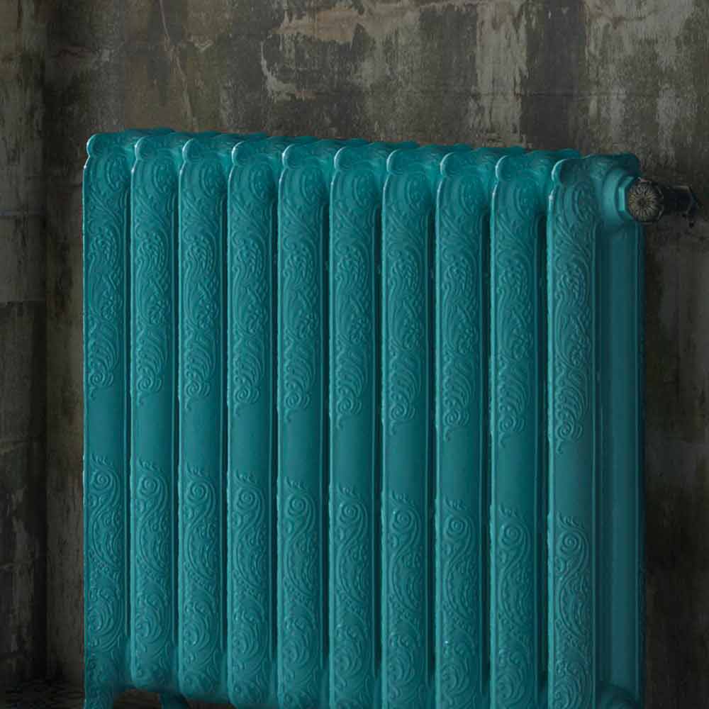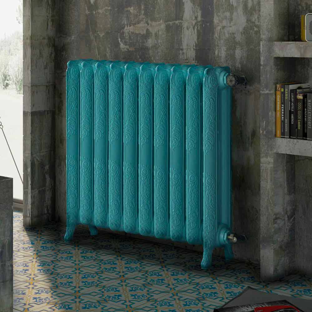 The radiator with a proudly retro taste that becomes the protagonist of its space, responding to the desire to rediscover in the classic the security of a refined elegance. Hydraulic radiator in decorated and colored cast iron with two columns.